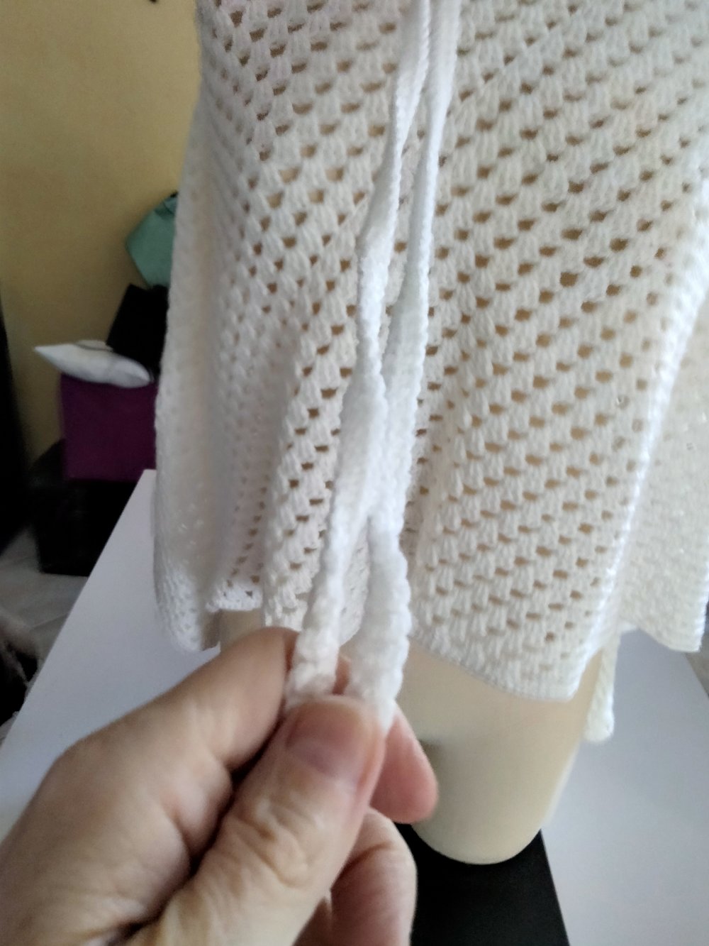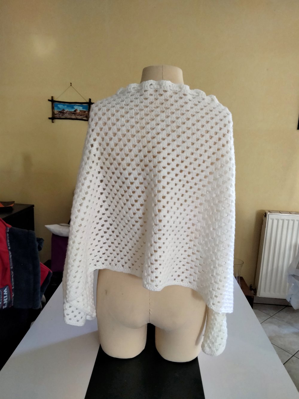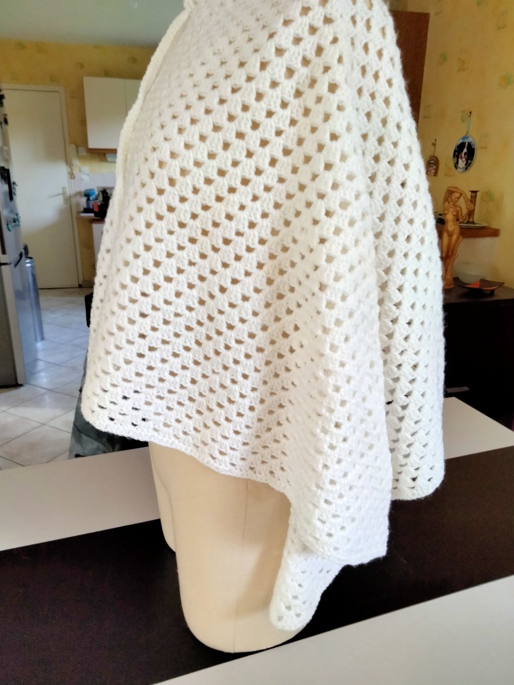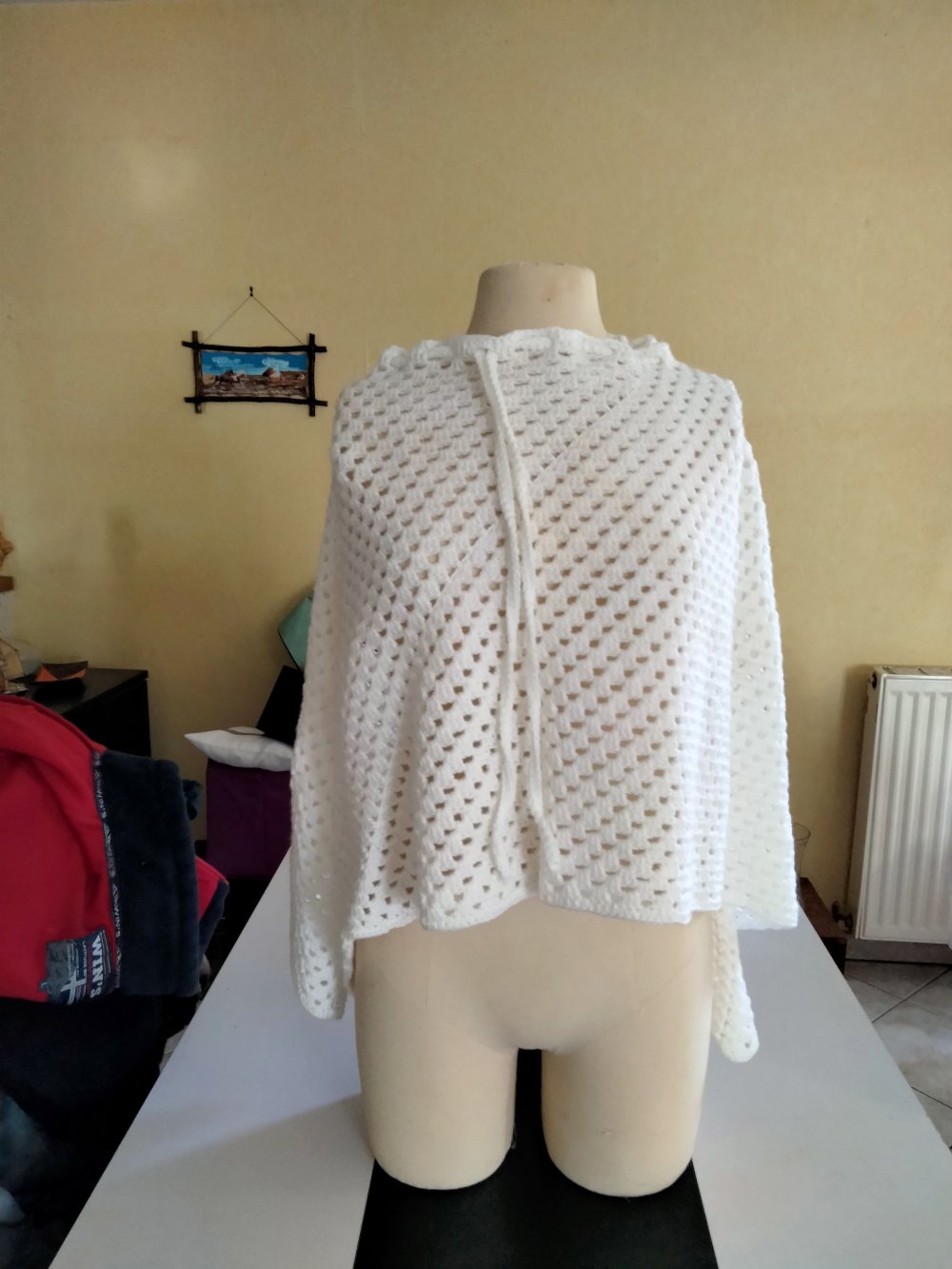 poncho blanc en crochet fait main.