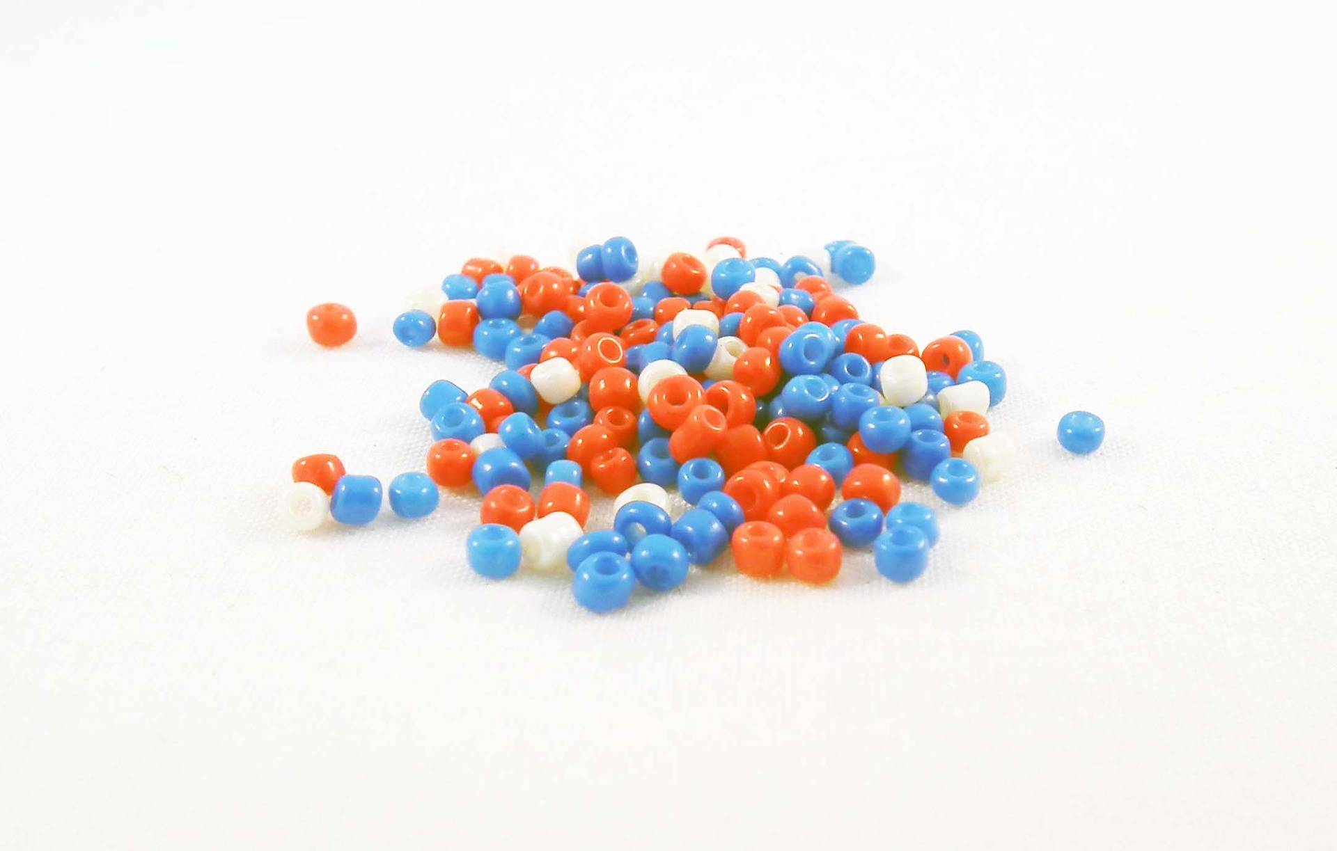 Lot de 1000 petites Perles de Rocaille en verre opaque Teintes Bleu Blanc Rouge USA États Unis Spacer