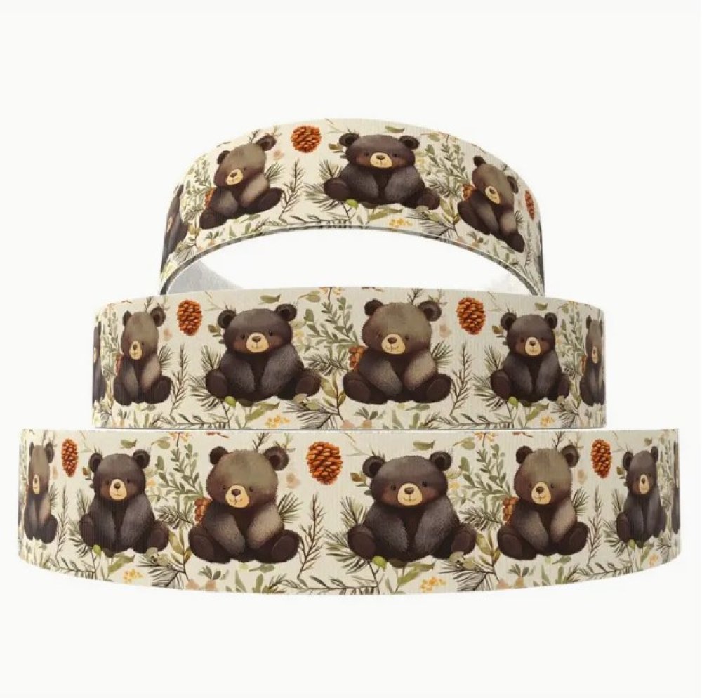 1 m de ruban gros grain imprimé 2.5 cm couture scrapbooking ourson
