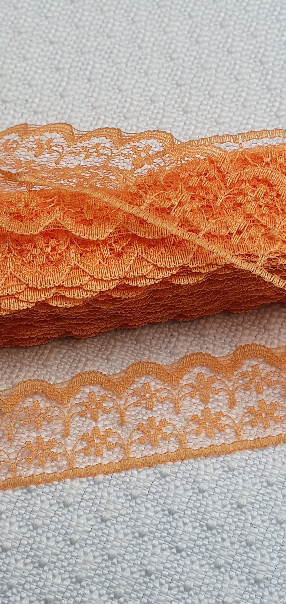 1m de dentelle orange fine souple 22mm polyester. Plusieurs couleurs dans la boutique