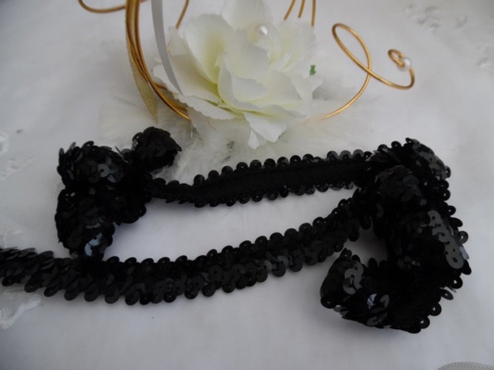 ARTICLE: 1M de Ruban Élastique avec Paillettes Sequins à Reflets Brillants Noir 2.2cm