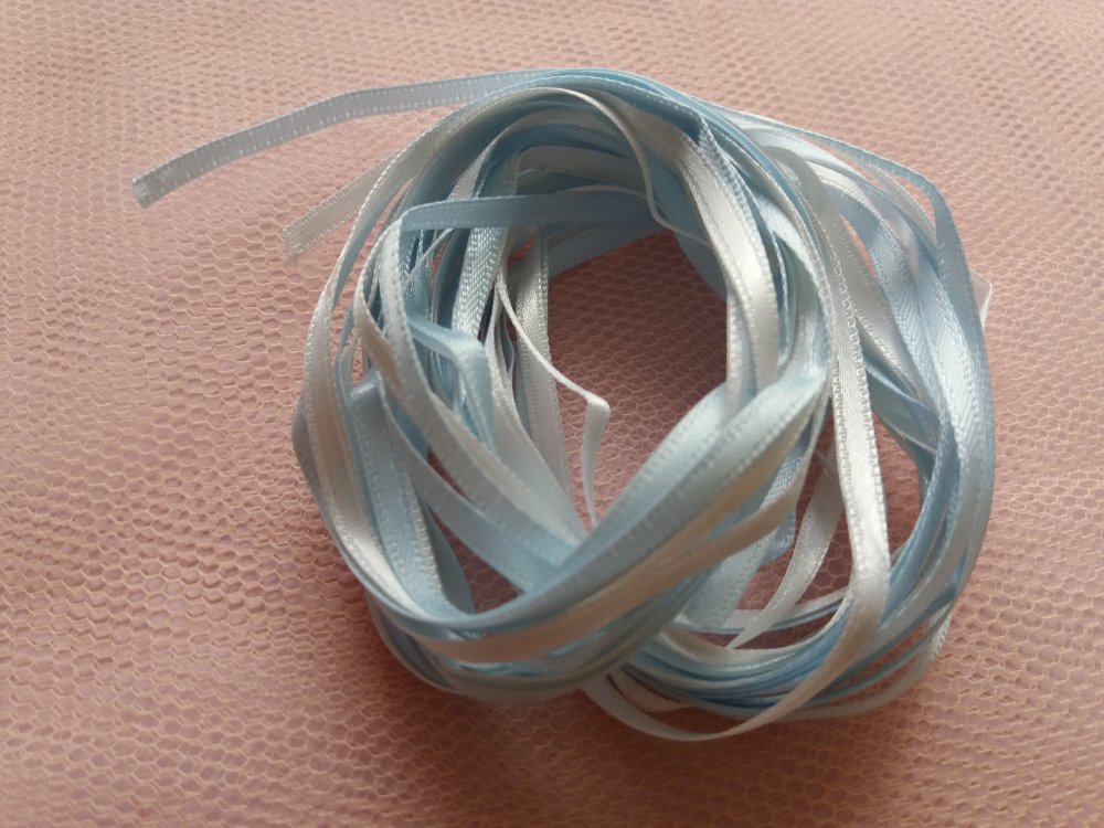 2 rubans satin bleu-clair et blanc pour vos créations textiles, bijoux, broderie, couture ...