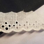 Ruban en broderie anglaise de 25 mm avec motifs ajourés circulaires et bordure festonnée. Idée Couture : Parfait pour orner des vêtements d'été, personnaliser de la layette ou embellir du linge de maison.