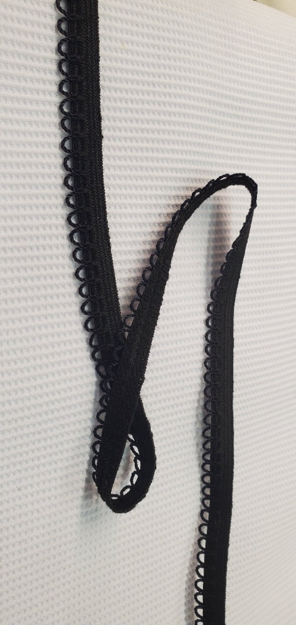 Ruban élastique noir 10 mm en déstockage. Souple, solide et facile à coudre, parfait pour ceintures, jupes, masques ou accessoires couture. Idéal pour vos créations et réparations. Vendu au mètre ou par lot de 10 m.