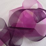 Je vous propose ce duo de rubans en organza, chacun faisant 2 m de longueur sur 4 cm de largeur, l'un couleur prune, l'autre couleur violine.