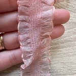 Apportez charme et délicatesse à vos projets avec cet élastique à volants en organza rose.