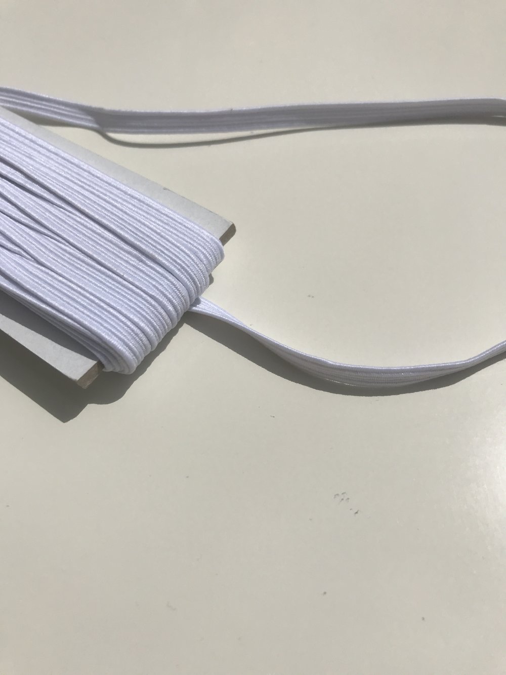 Élastique blanc d une largeur de 6 mm très bon qualité,idéal pour confectionner des masques vendu au metre.