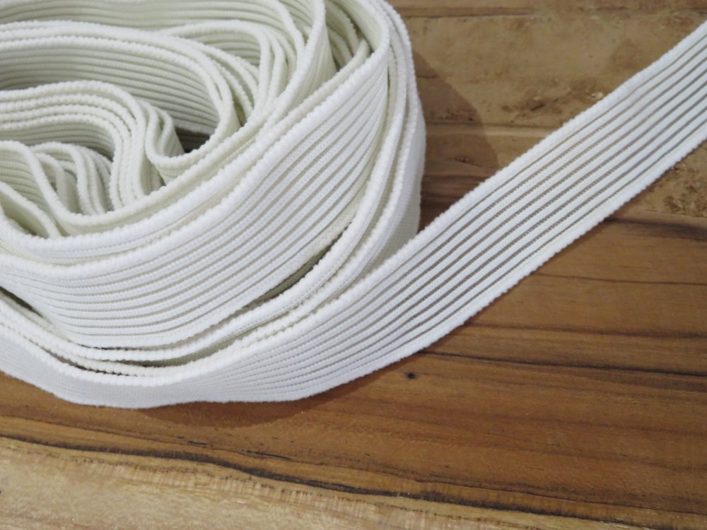 Élastique écru large de 24 mm, utilisé pour tous types de travaux créatifs ainsi que la création de bijoux: bracelets, couture, accessoires..