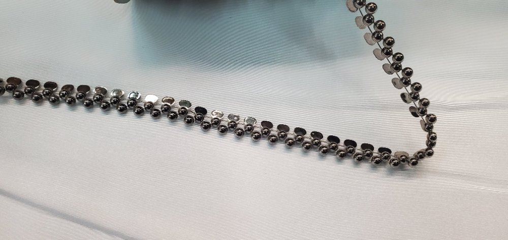 Magnifique galon / ruban métallique d'environ 15 mm de large, couleur Argent Vieilli (finition antique). Idéal pour customiser sacs, chaussures, vestes en jean ou créer des bijoux tendance. Vendu au mètre.