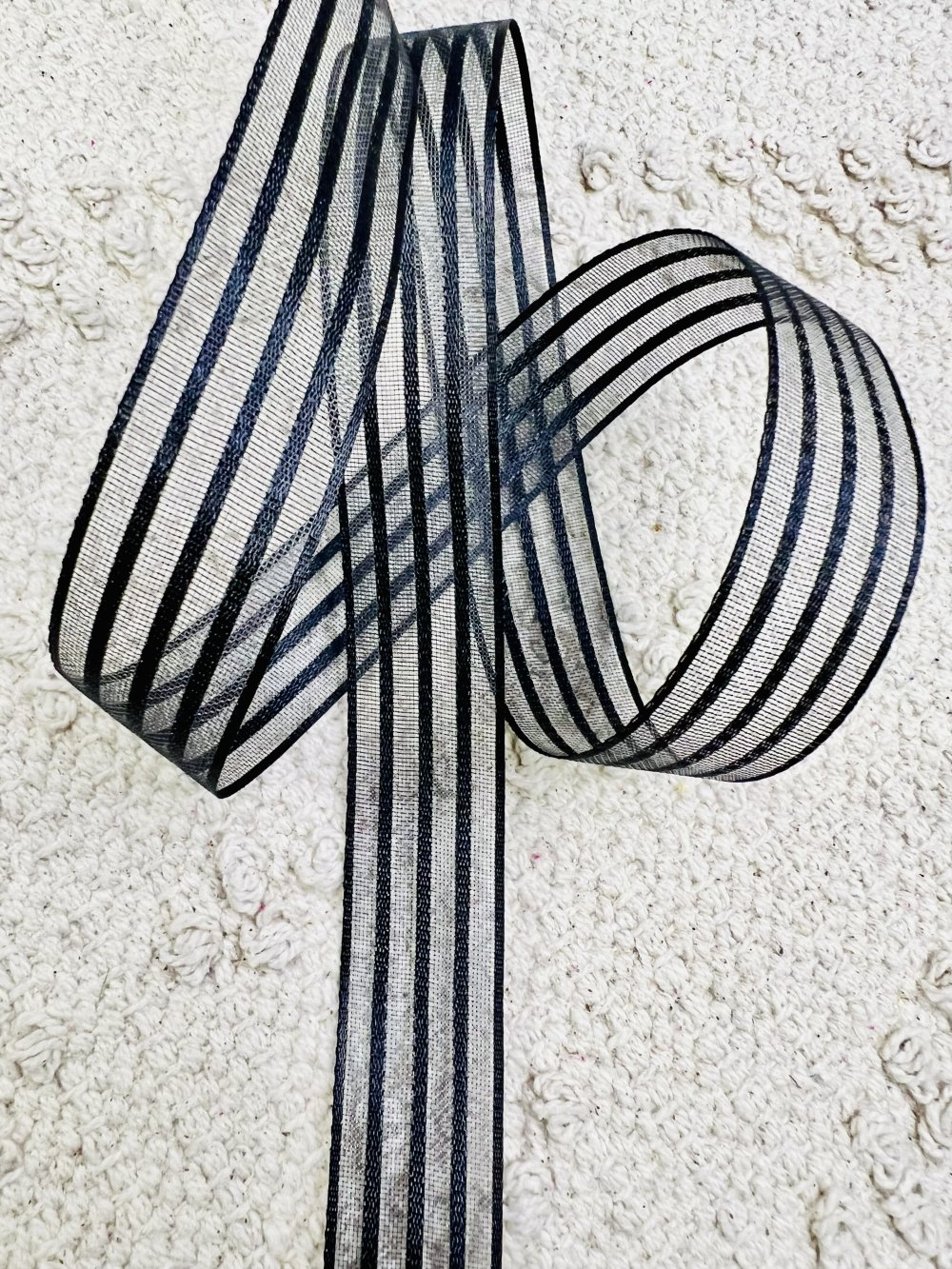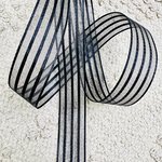 Sublimez vos réalisations avec ce ruban à rayures satinées noir, symbole d’élégance et de modernité. Sa texture légère en organza, rehaussée de fines rayures satinées, crée un contraste subtil et met en valeur vos créations avec style.