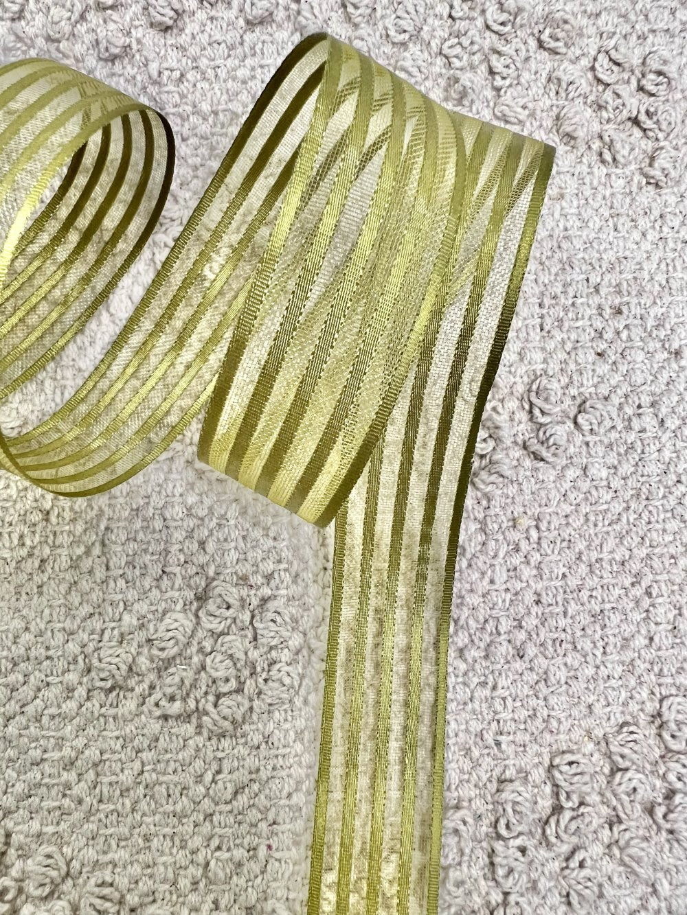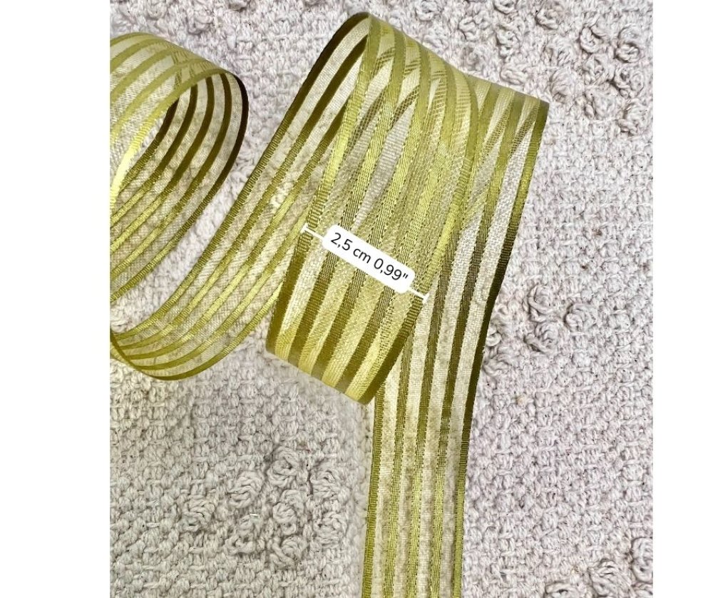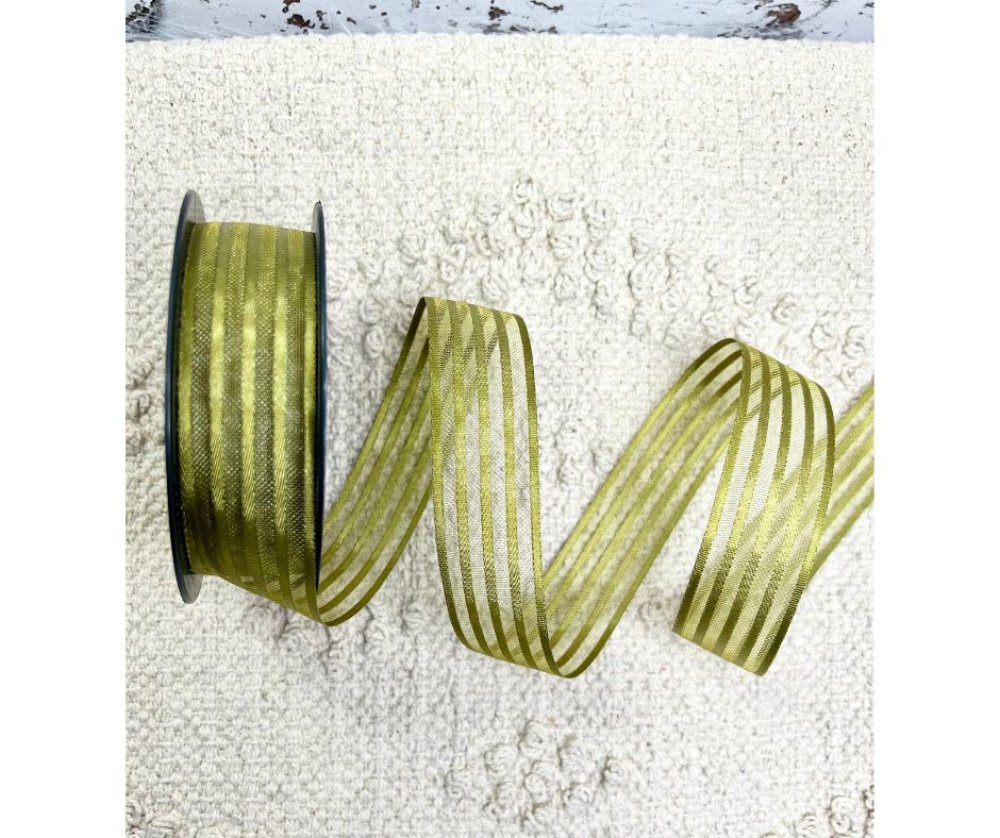 Ce ruban à rayures satinées vert olive est parfait pour donner une allure raffinée et authentique à vos projets. Sa texture légère en organza traversée de rayures satinées capte la lumière tout en conservant une touche douce et subtile.