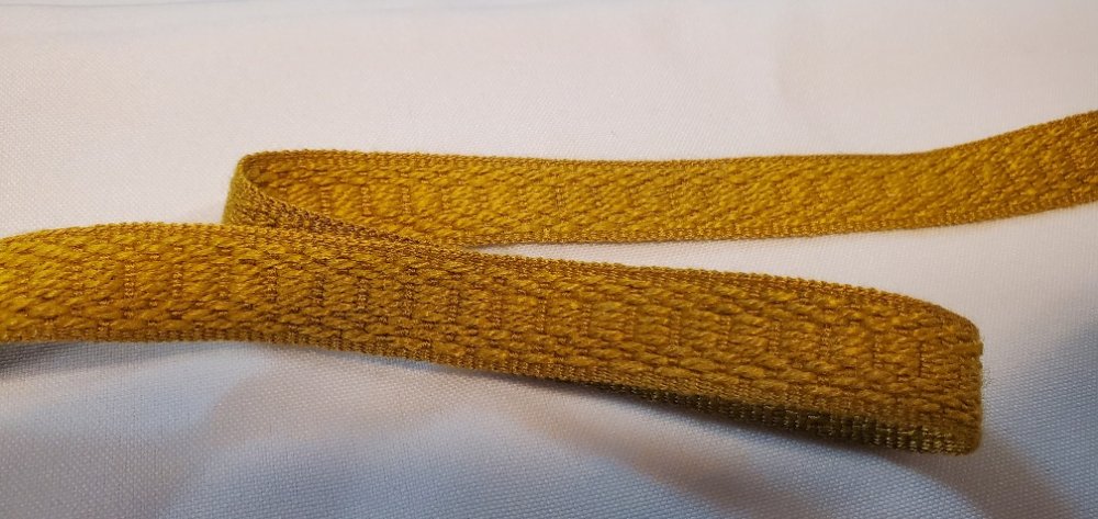 Ruban texturé jaune moutarde de 15 mm au tissage renforcé. Idée Couture : Dynamiser des coussins, restaurer des assises ou créer des accessoires colorés et robustes.