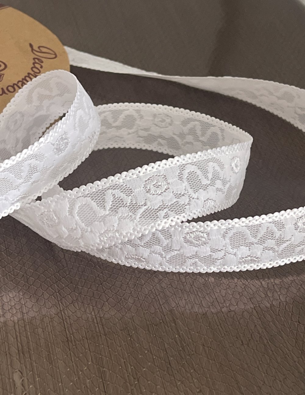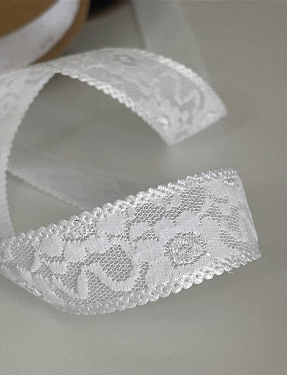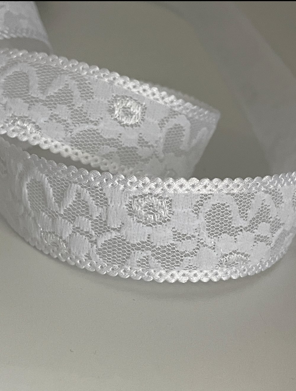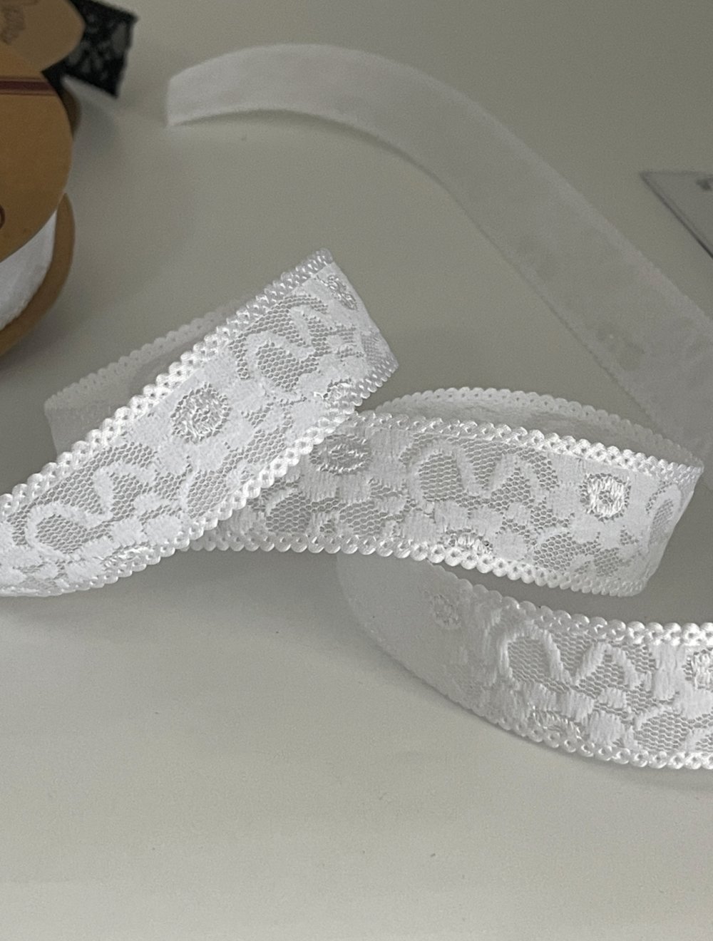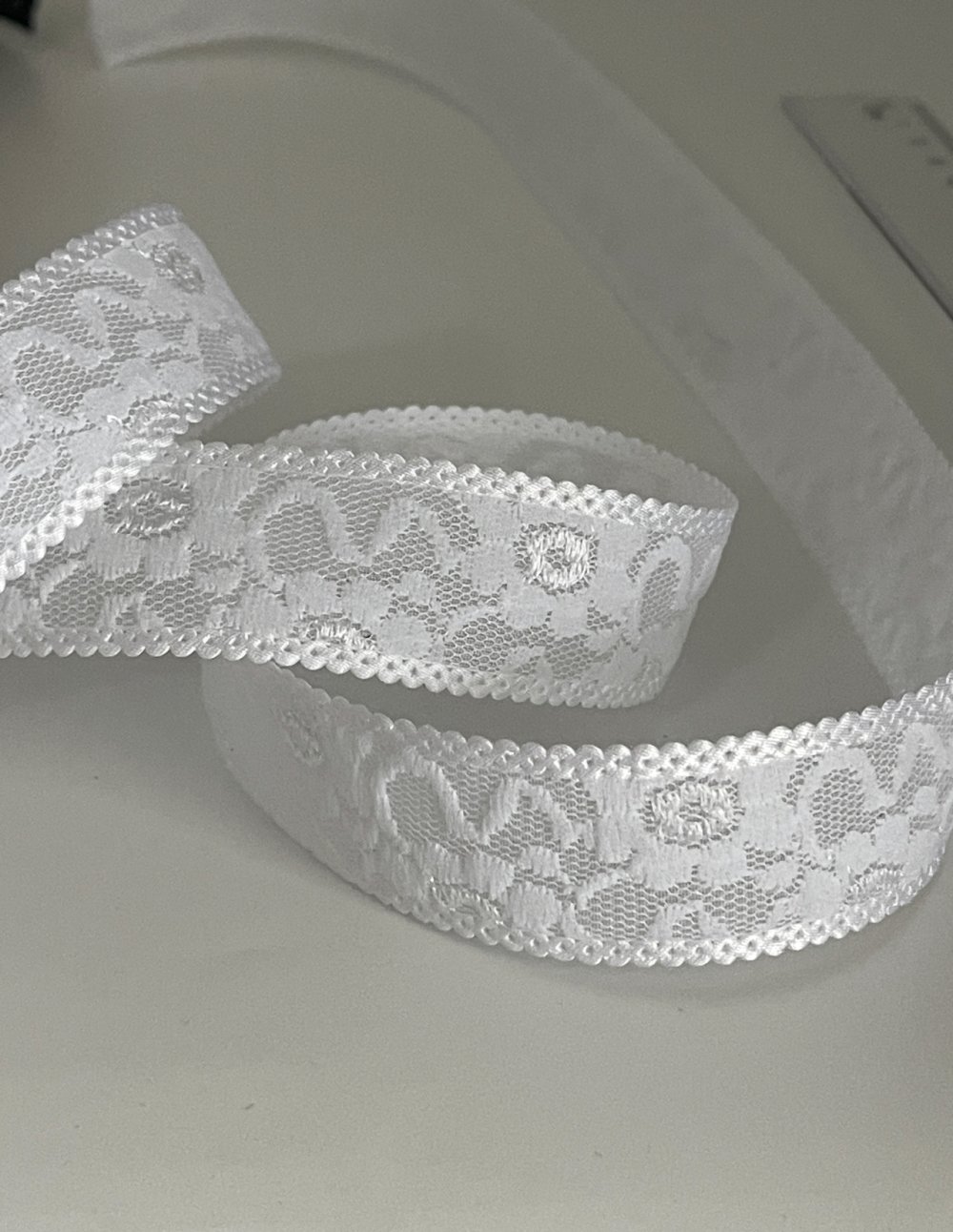 Sublimez vos créations grâce à ce magnifique ruban en dentelle blanche de 25 mm de largeur. Sa texture délicate et son motif floral ajouré apportent une touche romantique et élégante à tous vos projets : couture, décorations de mariage, scrapbooking, accessoires et emballages raffinés.