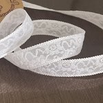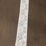 Ce ruban en dentelle blanche présente un motif floral délicat, composé de petites fleurs ajourées et de courbes décoratives. Les bords sont légèrement ondulés, apportant un aspect doux, romantique et vintage. La dentelle est fine mais résistante, parfaite pour une finition élégante de vos projets créatifs.