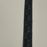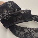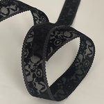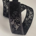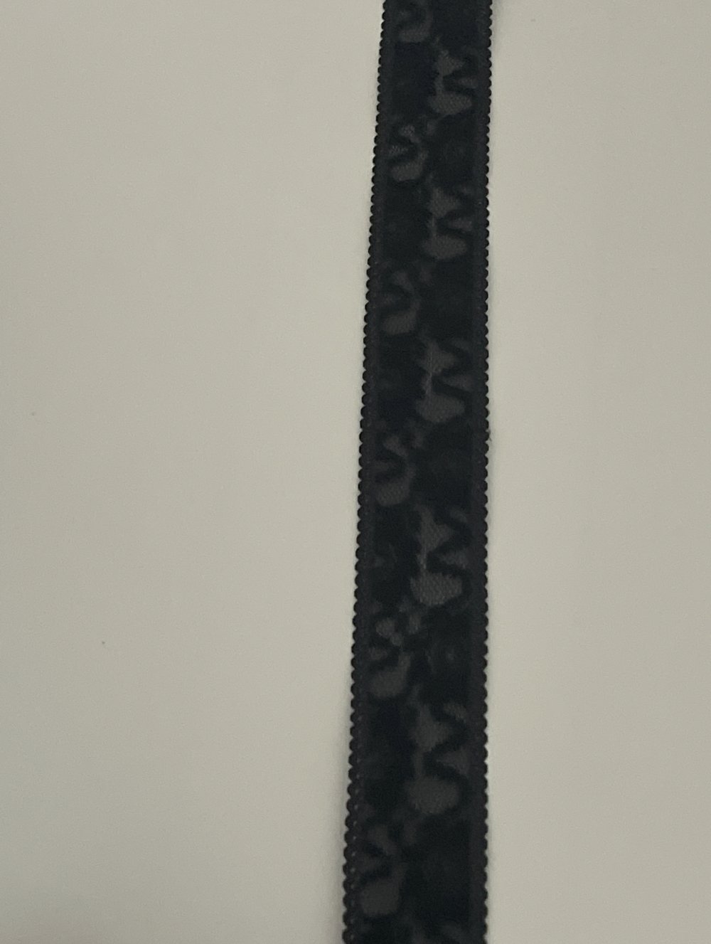 Ce ruban en dentelle noire présente un motif floral délicat, composé de petites fleurs ajourées et de courbes décoratives. Les bords sont légèrement ondulés, apportant un aspect doux, romantique et vintage. La dentelle est fine mais résistante, parfaite pour une finition élégante de vos projets créatifs.