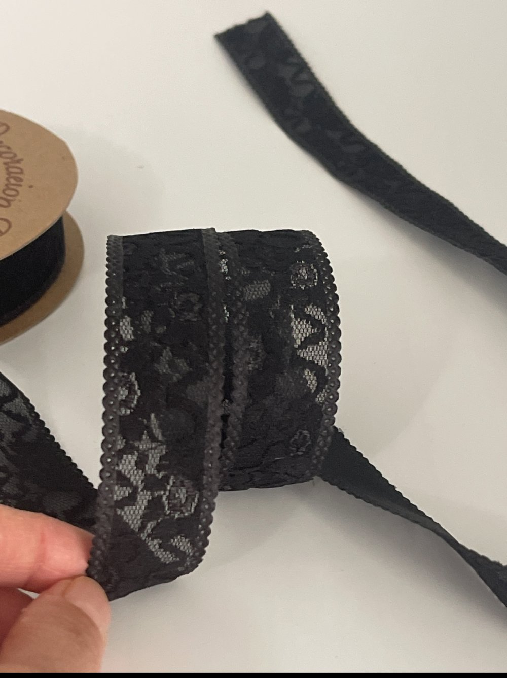 Sublimez vos créations grâce à ce magnifique ruban en dentelle noire de 25 mm de largeur. Sa texture délicate et son motif floral ajouré apportent une touche romantique et élégante à tous vos projets : couture, décorations de mariage, scrapbooking, accessoires et emballages raffinés.