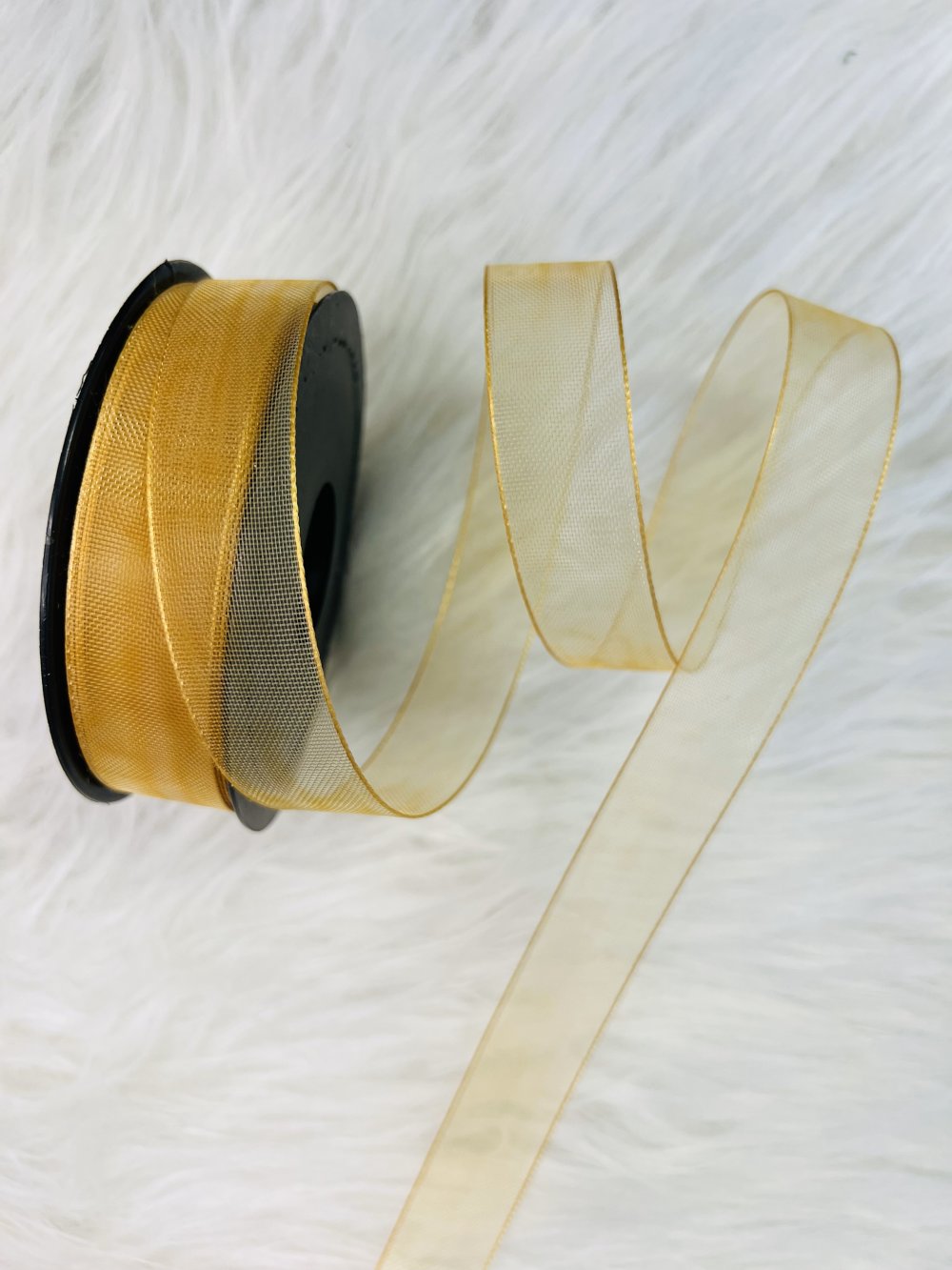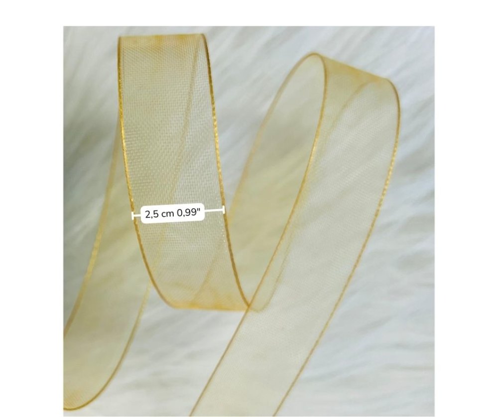 Illuminez vos créations avec ce ruban en organza effet satiné or doré, symbole d’élégance et de raffinement. Léger et transparent, il capte magnifiquement la lumière et offre un rendu lumineux, idéal pour sublimer vos décorations de mariage, emballages cadeaux, créations couture ou projets DIY.