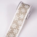 flocon de neige, ruban noel, emballage cadeau, 64mm, beige, jute, lui, blanc, fantaisie, large, décoration, imprimé, couture, câblé
