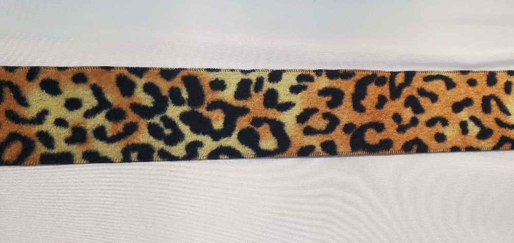 Superbe ruban en velours doux à motif léopard. Largeur de 4 cm. Idéal pour des anses de sacs, des ceintures ou des finitions de vêtements très mode et tendance. Vendu au mètre.