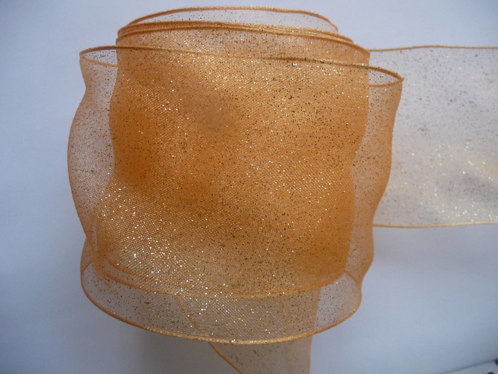 RUBAN ORGANZA VOILE COULEUR ORANGE, AVEC PAILLETTES