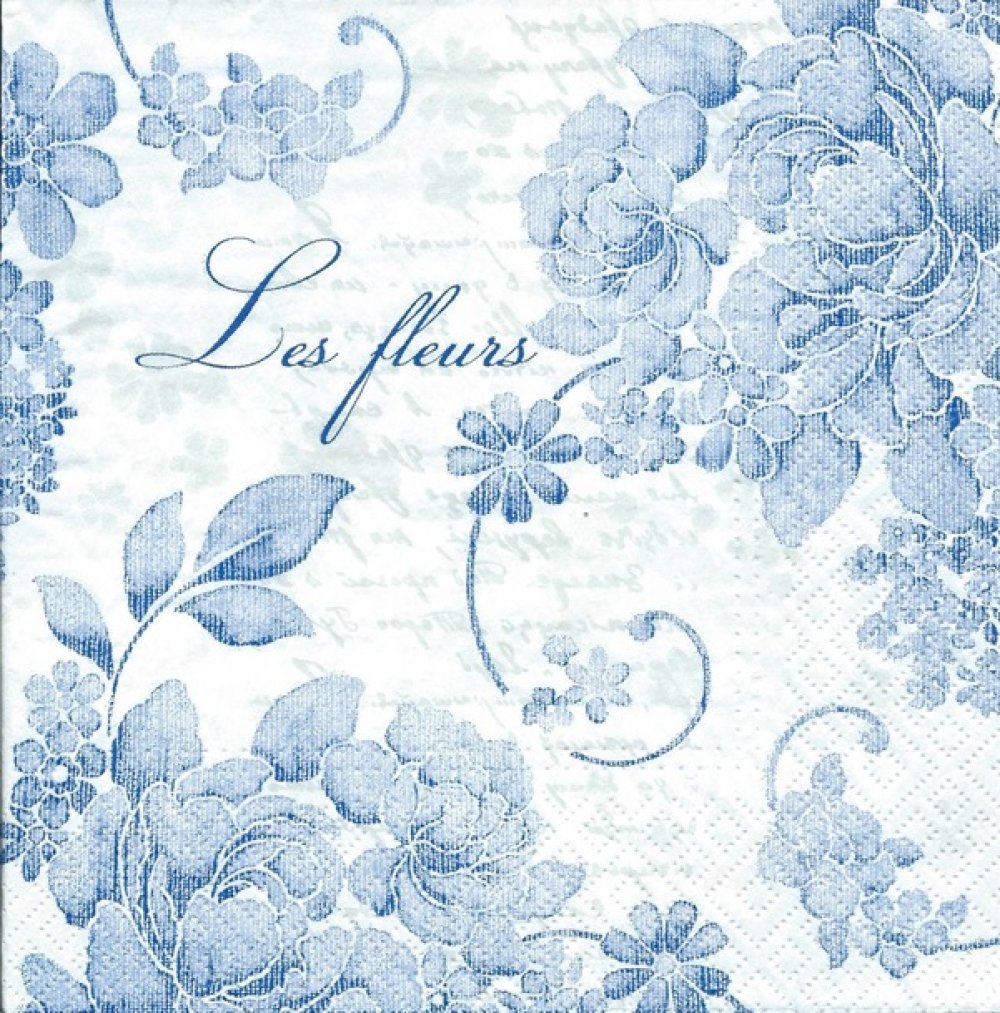 1 SERVIETTE EN PAPIER FLEURS BLEUES