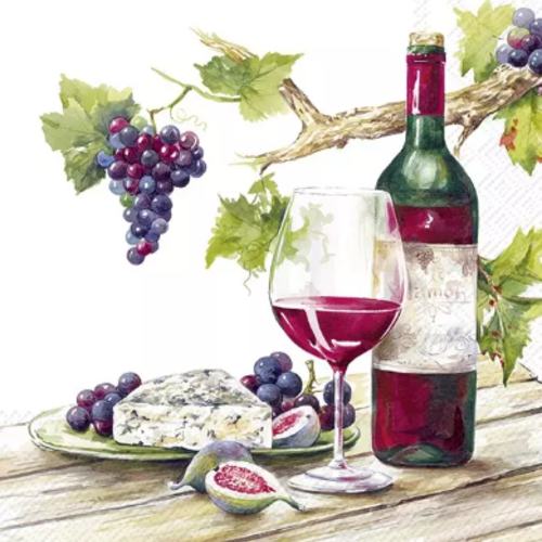 1 SERVIETTE EN PAPIER VIN - RAISIN - FROMAGE