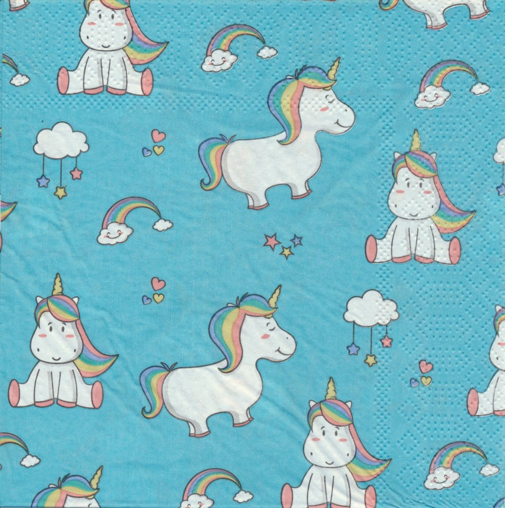 Serviette en papier "Licorne sur fond bleu" - 4 faces identiques
