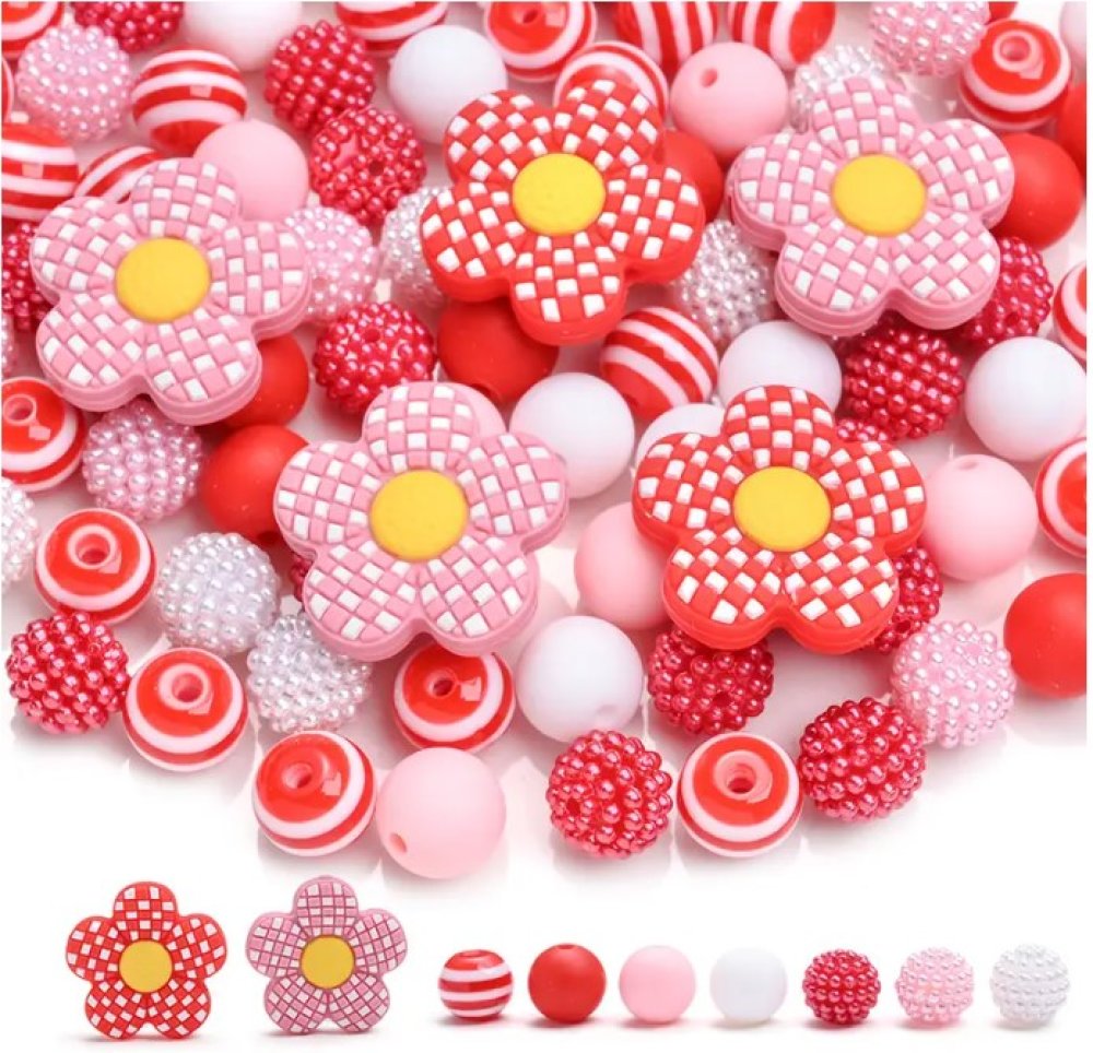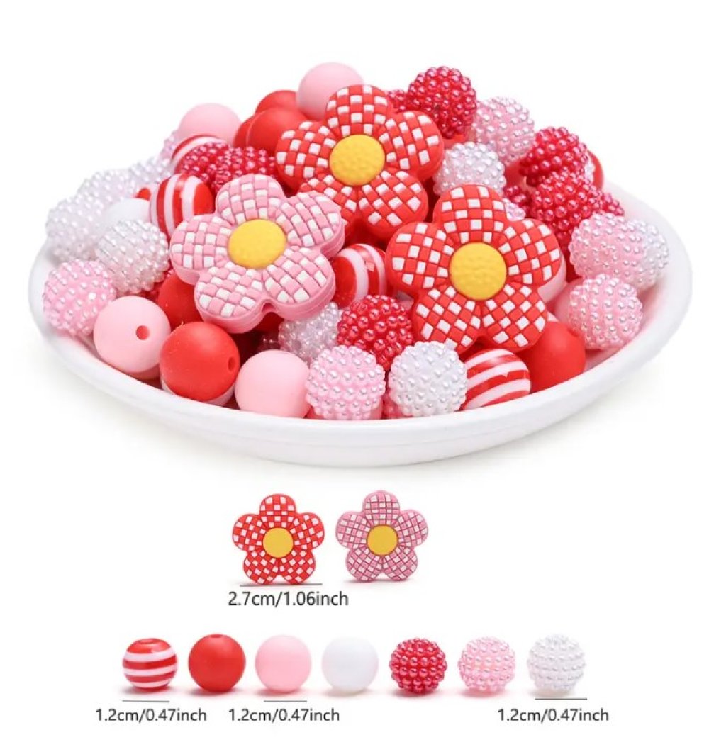 Composition du lot : 70 perles ronde de 12 mm / 2 perles focales fleur de 27 mm
