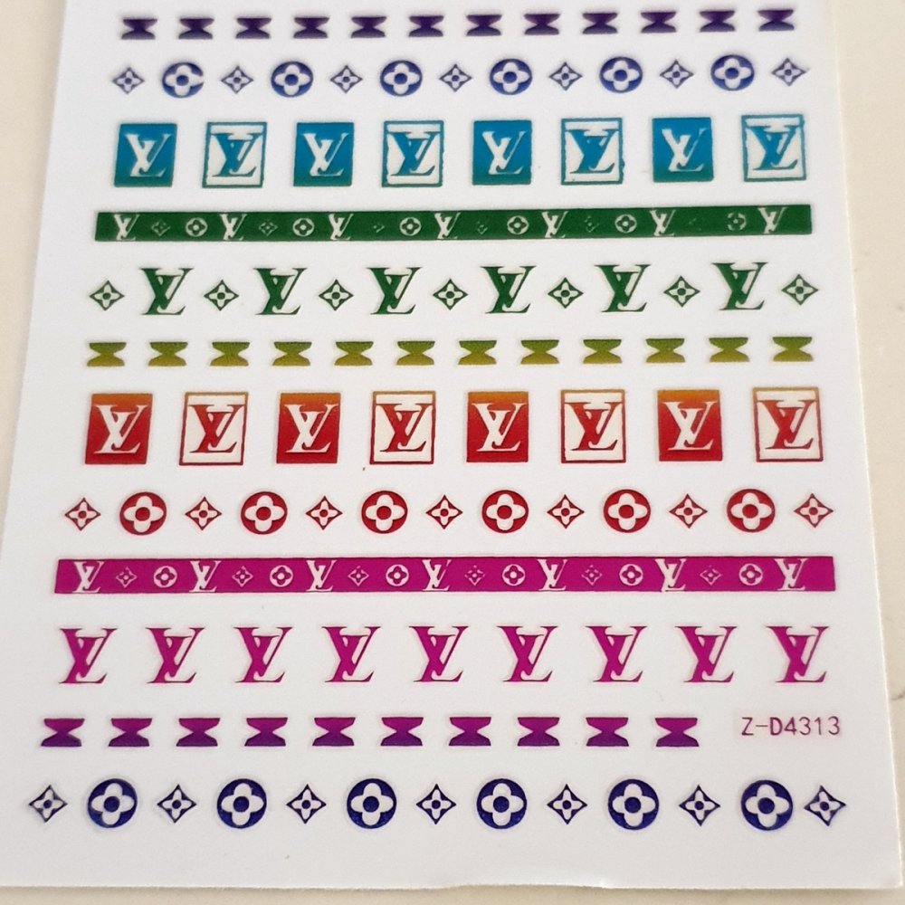 1 feuille d'autocollant 3D pour ongles logos marque de luxe.