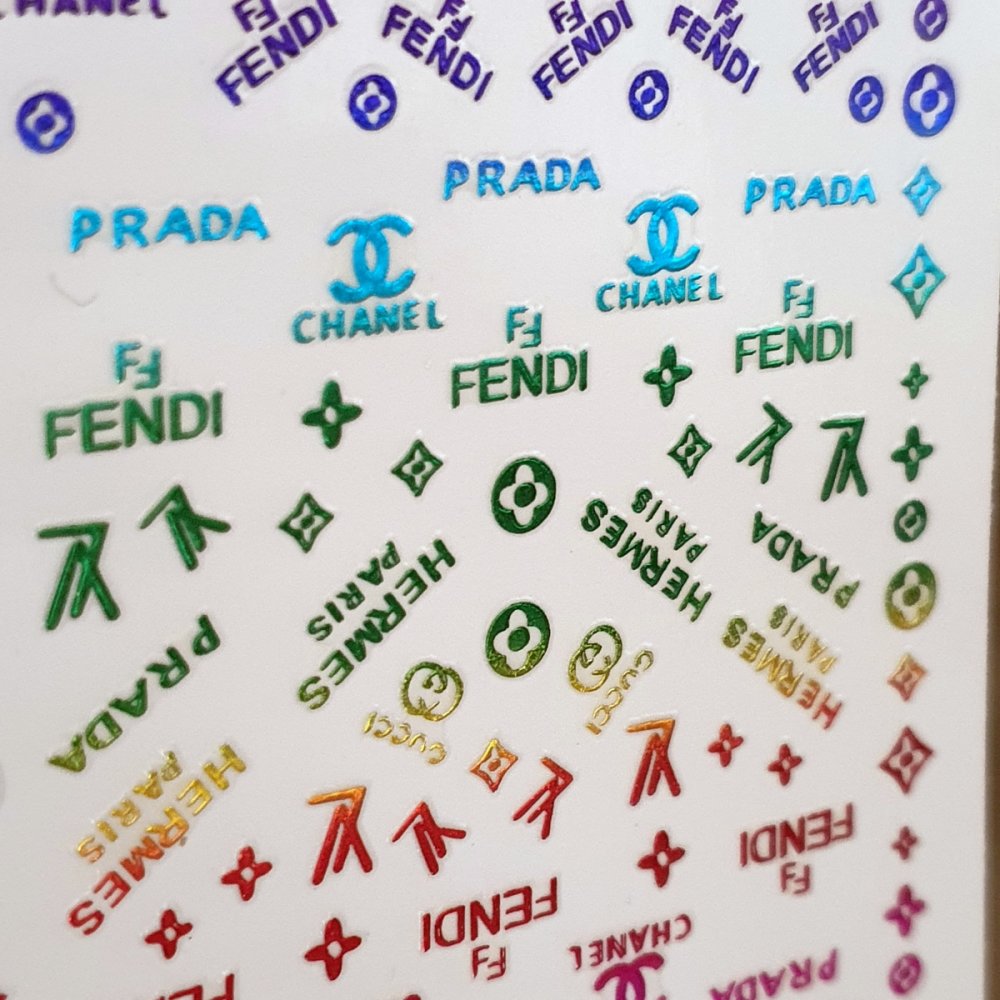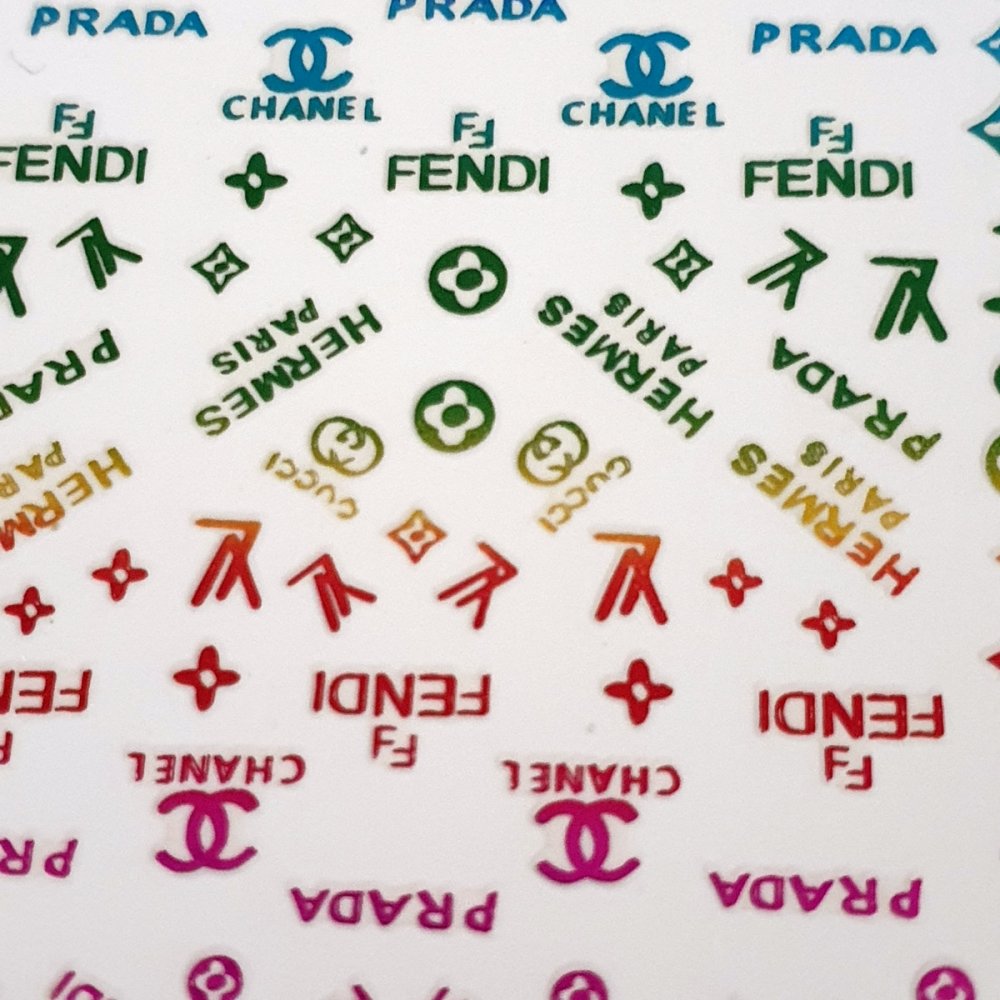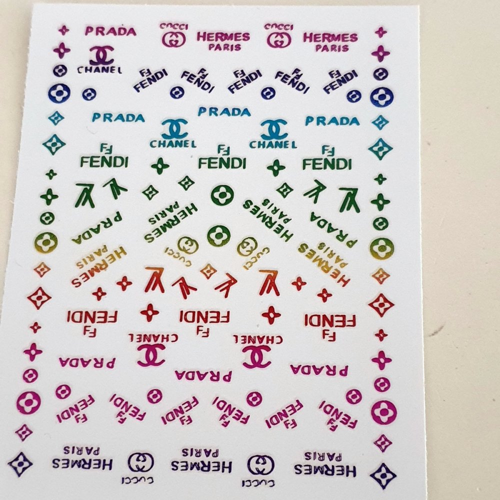 1 feuille d'autocollant 5D pour ongles logos marque de luxe.