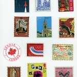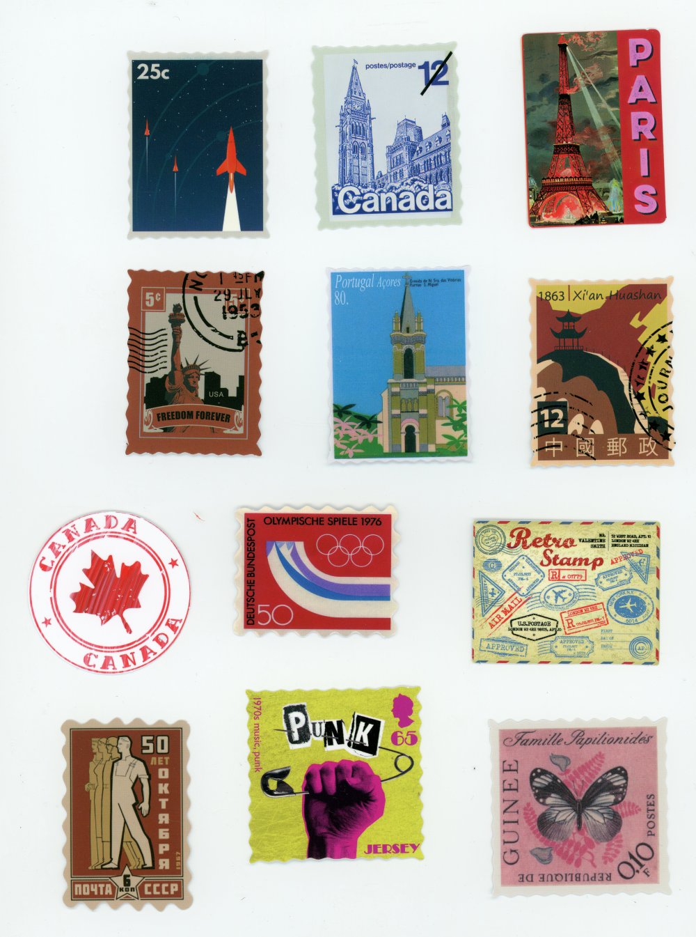 Lot de 17 stickers autocollants - timbres du monde - voyage - rétro, vintage (lot 1)