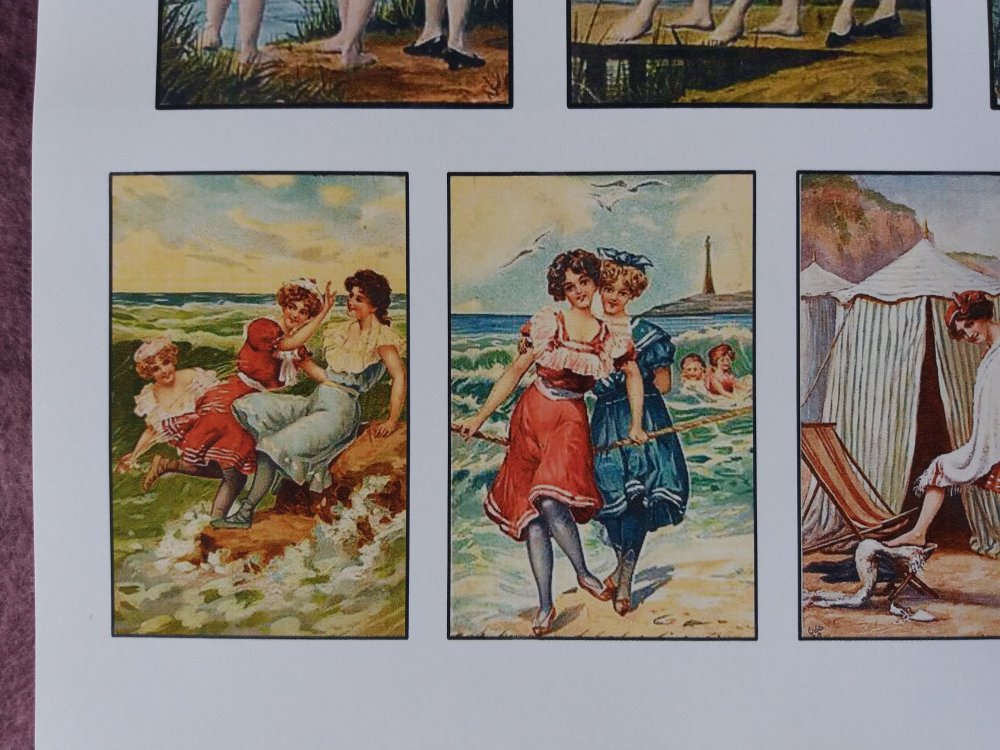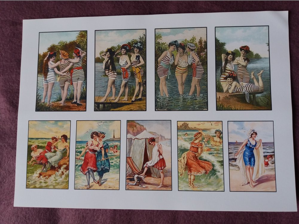 Planche adhésive d'images anciennes sur le thème "Bains de Mer" jeunes femmes Années 1900 , pour créations originales et personnalisées.