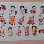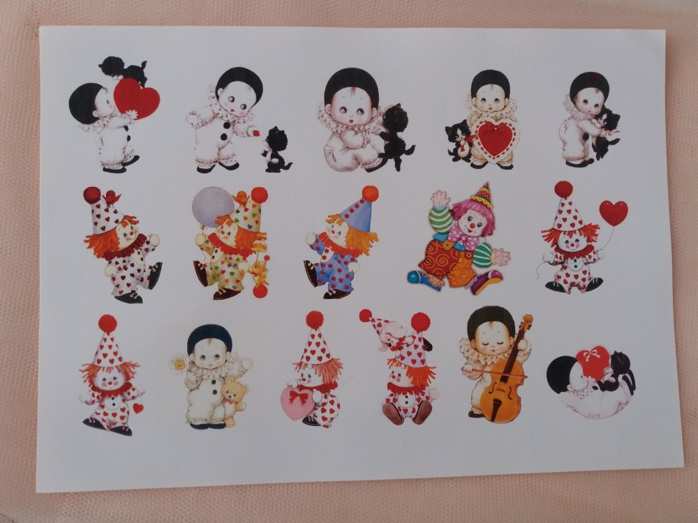 Planche adhésive illustrations d'enfants clowns et pierrots pour créations personnalisées.