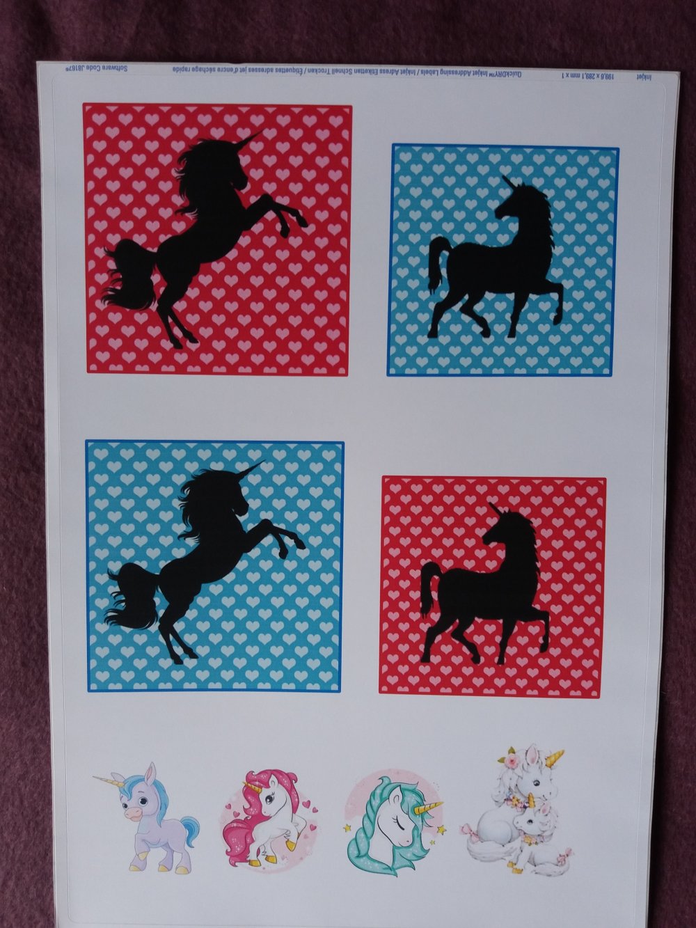 Planche autocollante, stickers, vignettes licornes