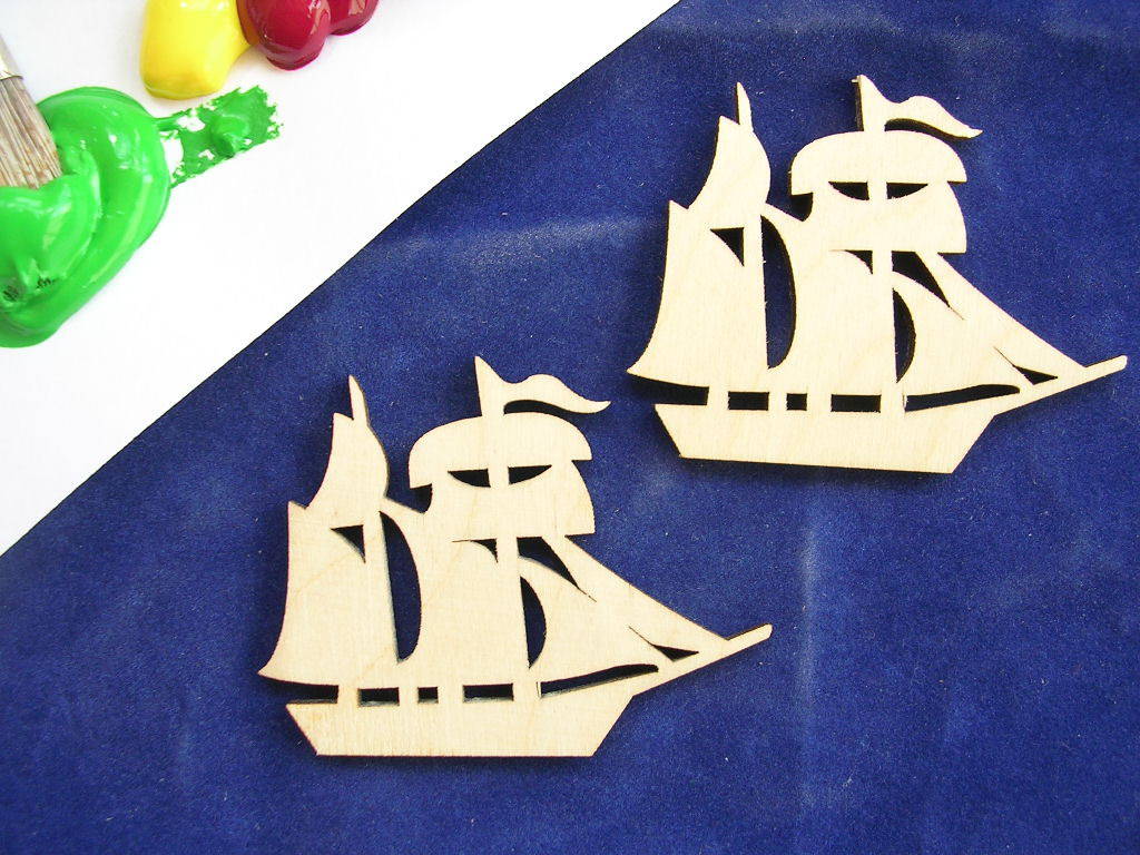 2 APPLIQUES EN BOIS BALTIQUE : Voilier 6*4cm