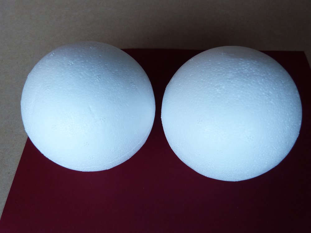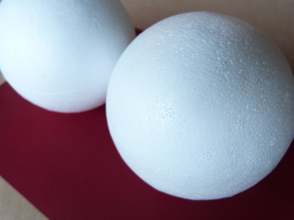 2 boules de 12 cm en polystyrene. Décoration de noel, suspension sapin, poupee fofuchas, loisirs creatifs, travaux manuels enfants...