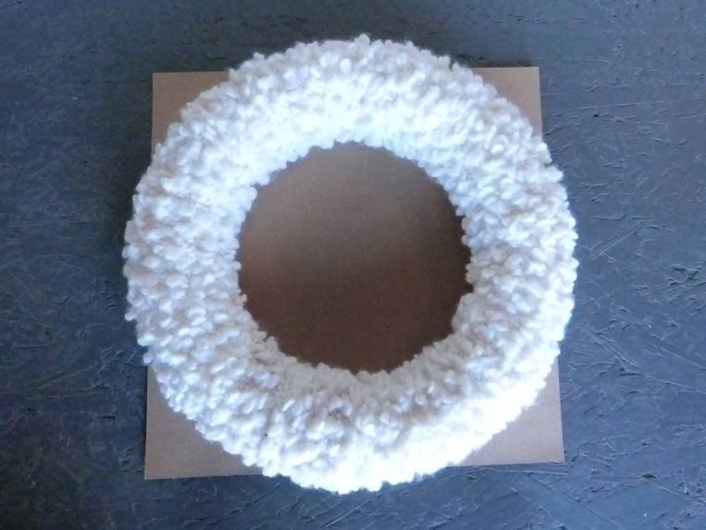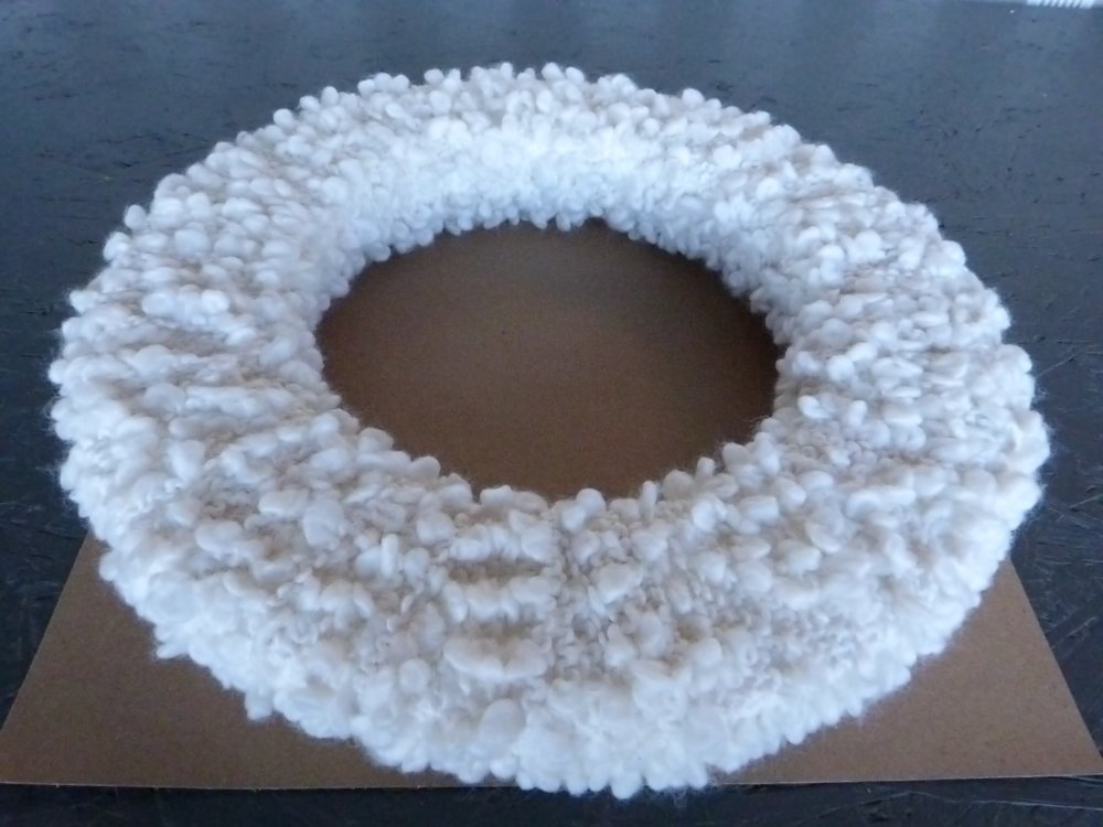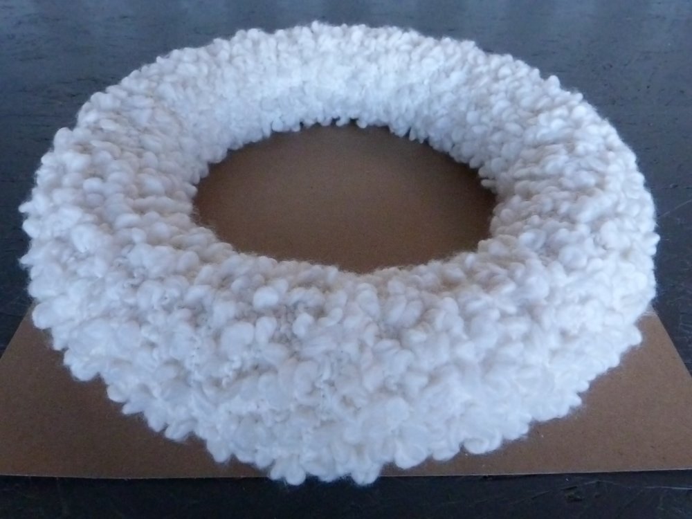 Couronne, base polystyrene recouverte de laine bouclettes blanche. Base pour une couronne de l'avent. Face arriere plane. Décoration de Noel. Décoration de porte.