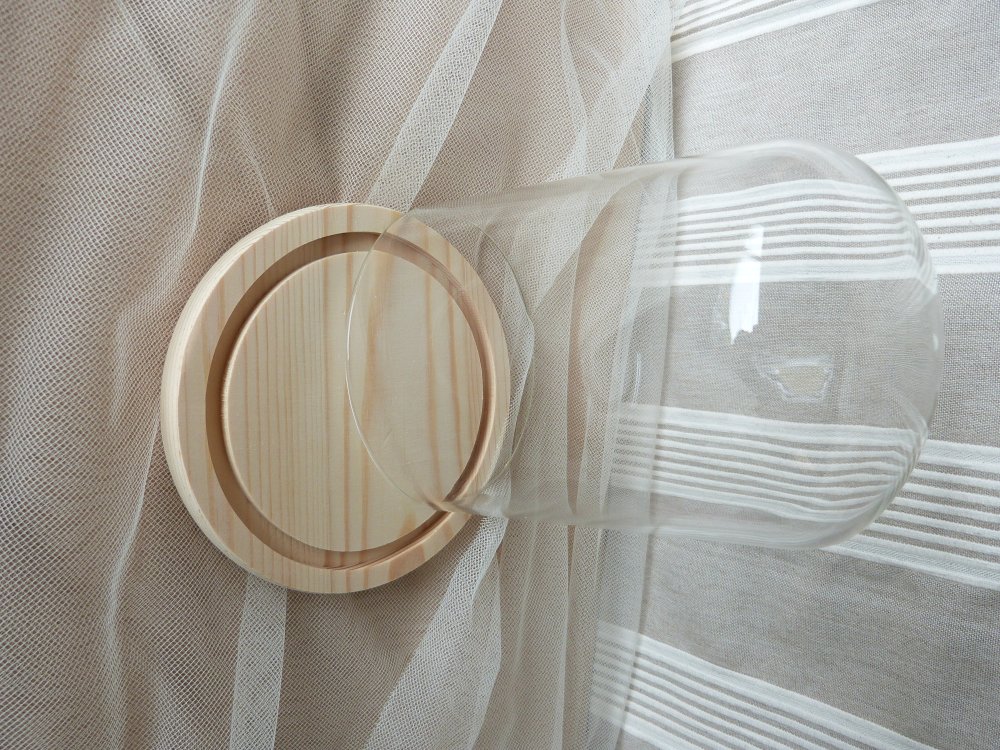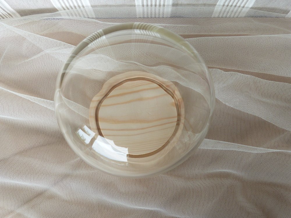 Globe en verre avec socle en bois. Décoration de Noel, été, miniature, curiosité...