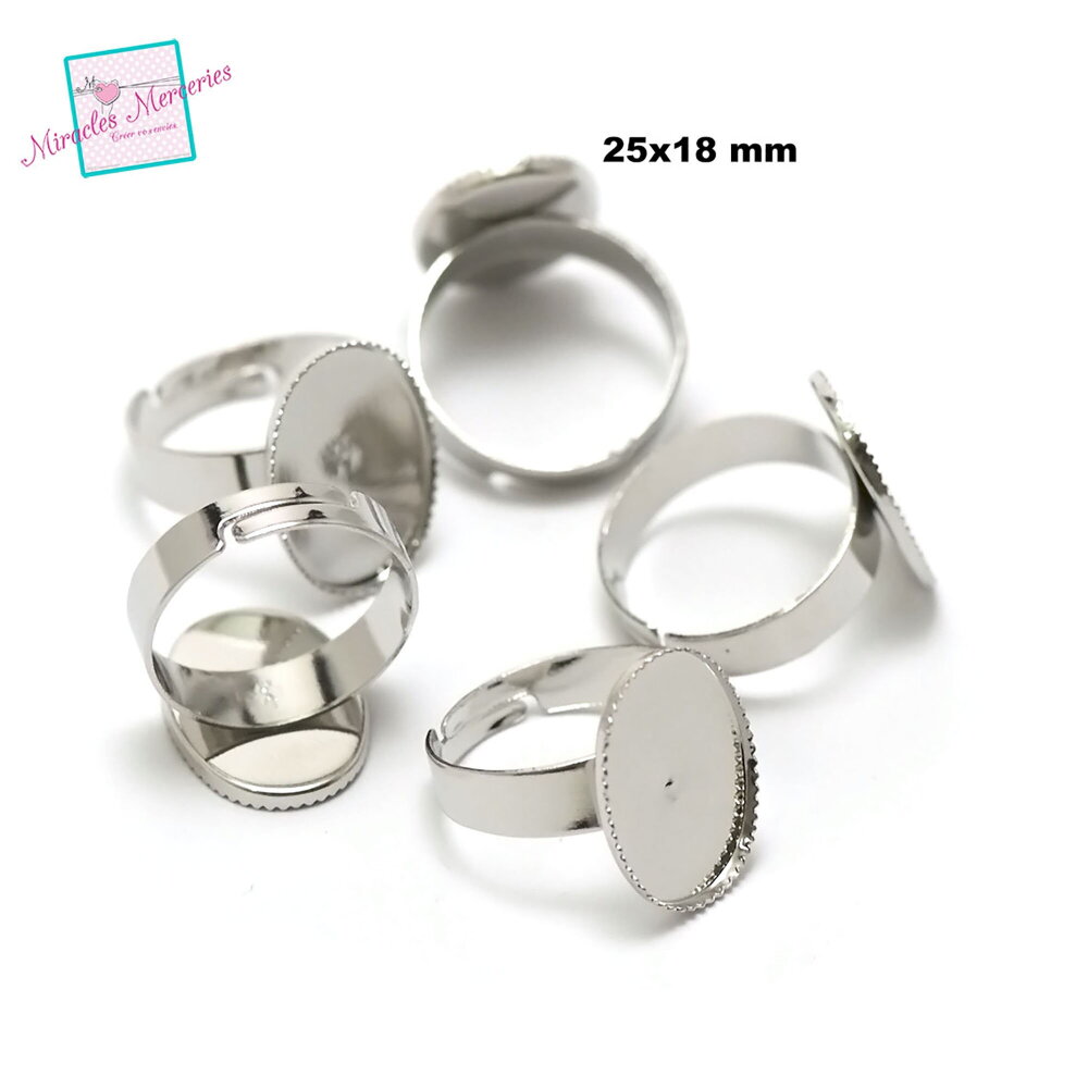10 support cabochon bague ovale 25x18 mm "dent"