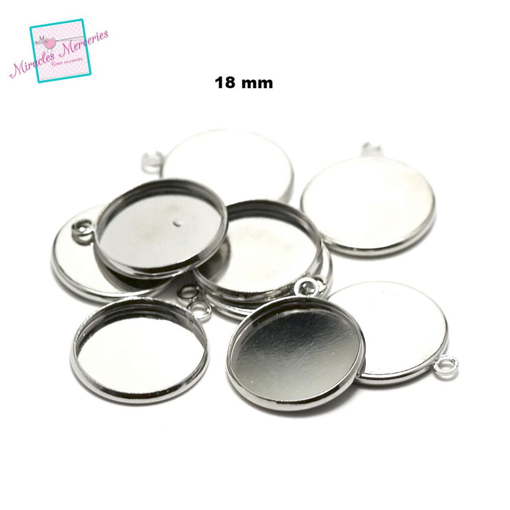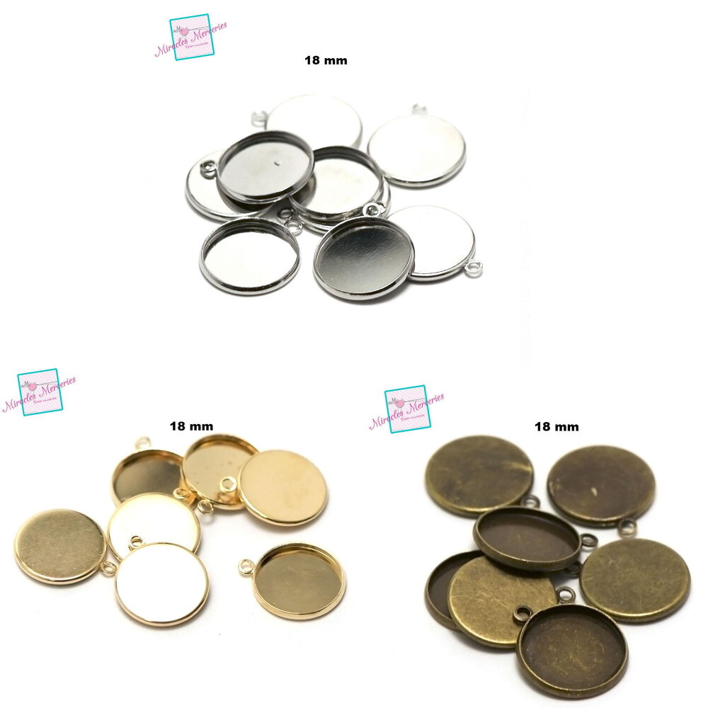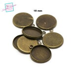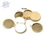 10 supports cabochon pendentif "ronde 18 mm", argenté (motif strié) /doré / bronze
