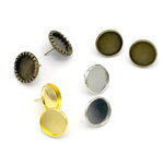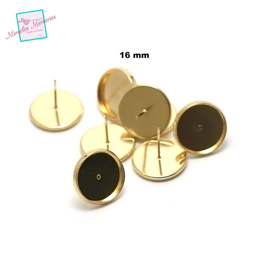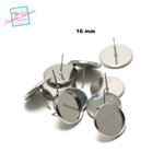 10 supports cabochon puce d'oreille "ronde 16 mm" droit, argenté / doré / bronze