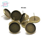 10 supports cabochon puce d'oreille "ronde 16 mm"droit,bronze
