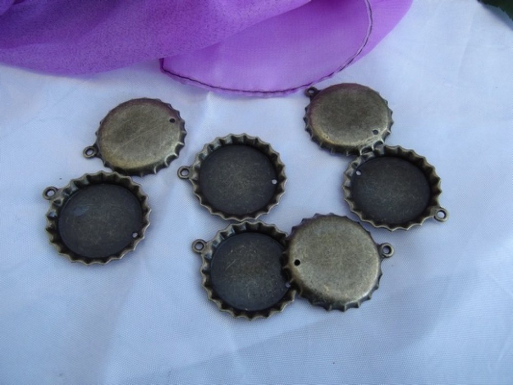 2 pendentifs support cabochon rond 40x32mm bronze