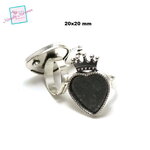 A- 2 supports cabochons bague 20x20 mm coeur "001 couronne",argenté