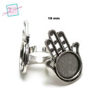 C- 2 supports cabochons bague 18 mm ronde "009 main de fatma"