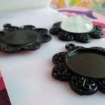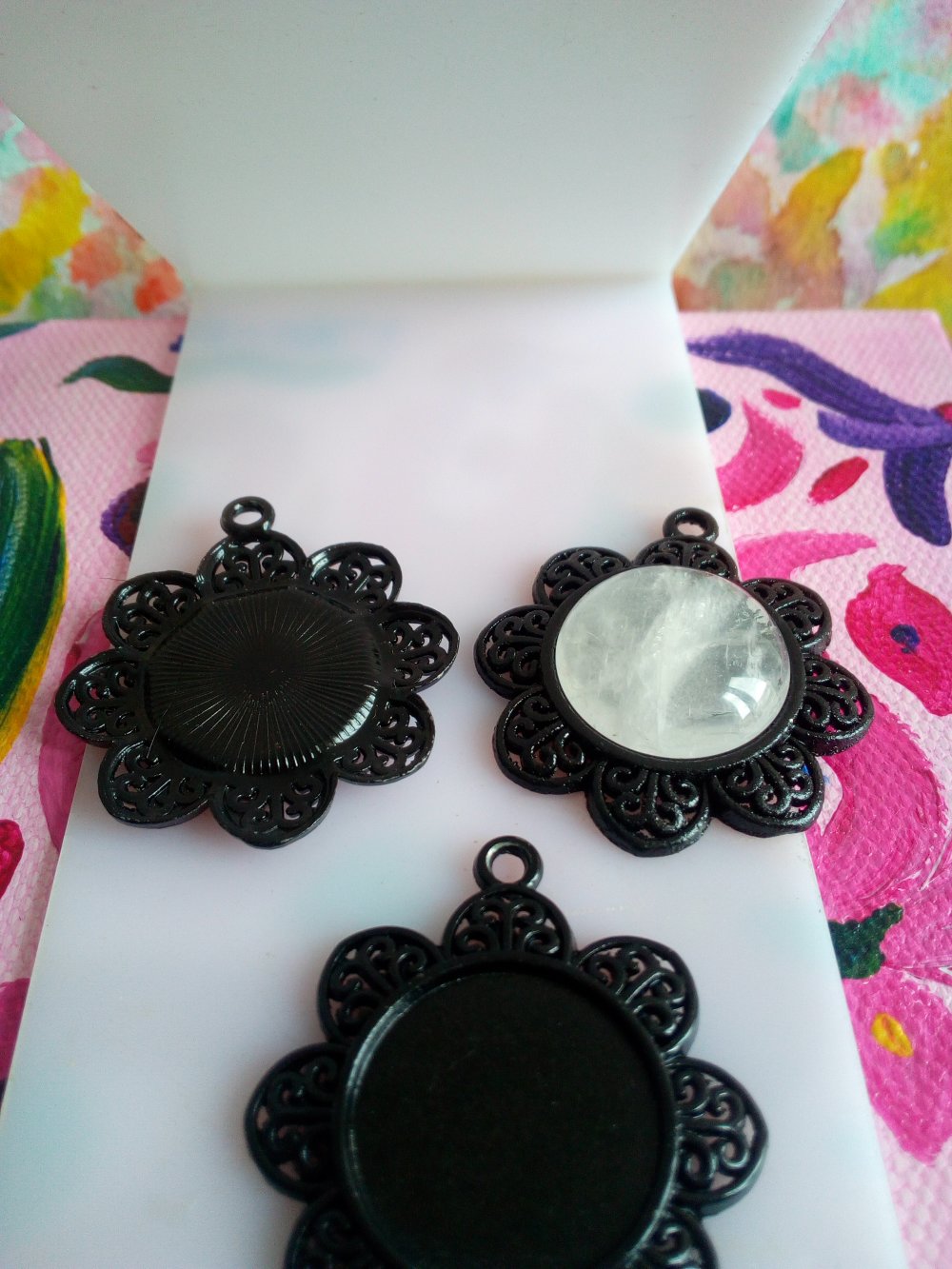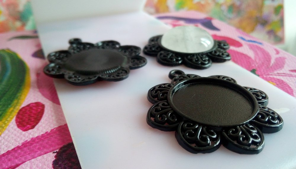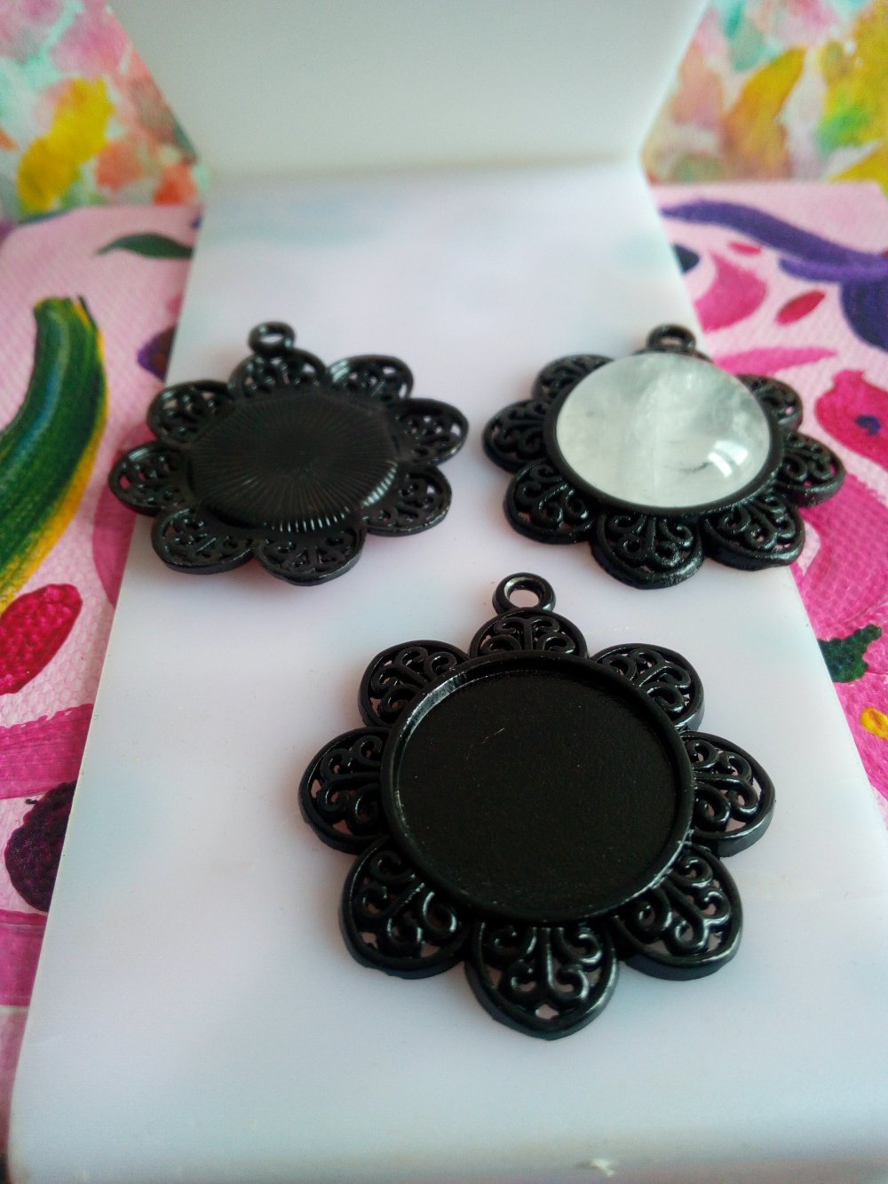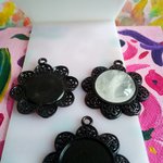 20mm,base pendentif fleur laiton noir collage cabochon rond,fond plat,image fimo pierre,fourniture bijou mercerie bricolage,