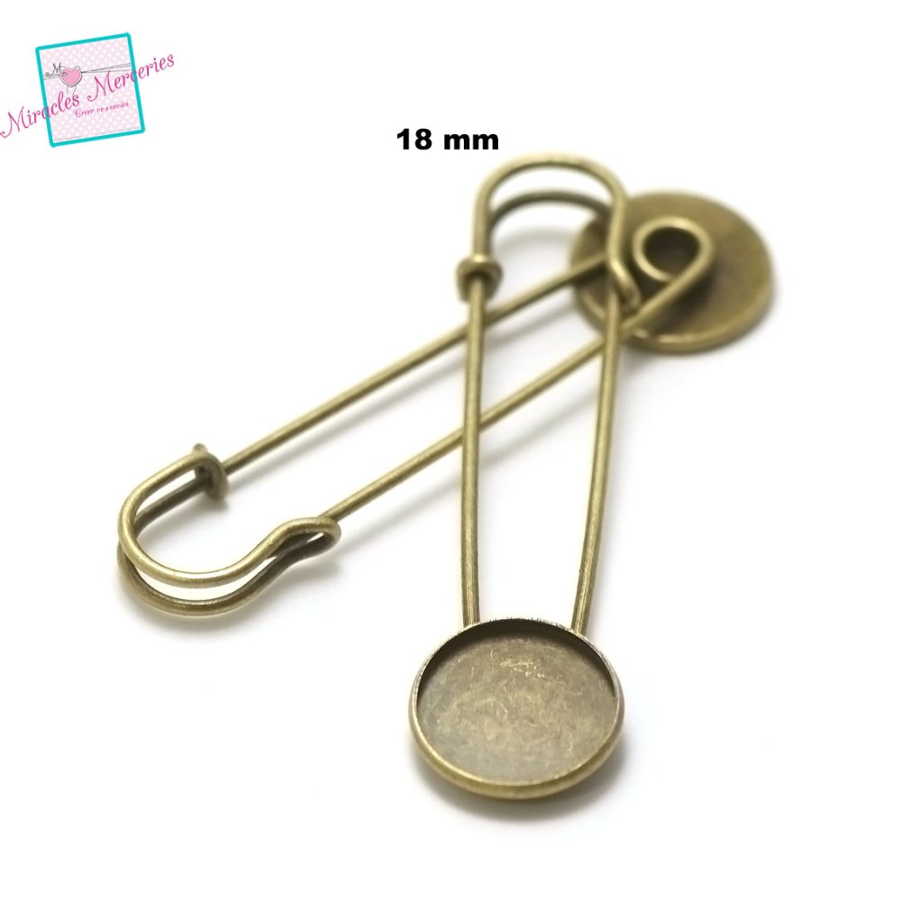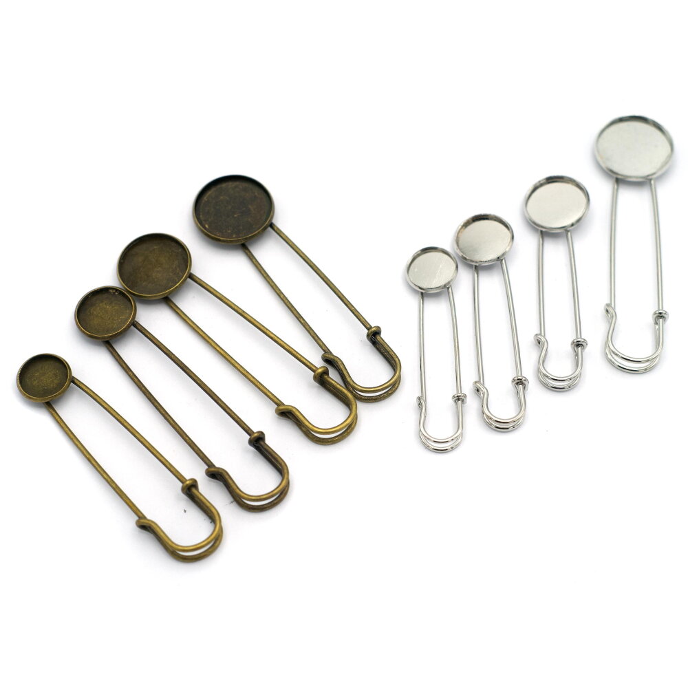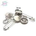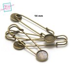 4 broche/épingles support cabochon ronde, argenté / bronze