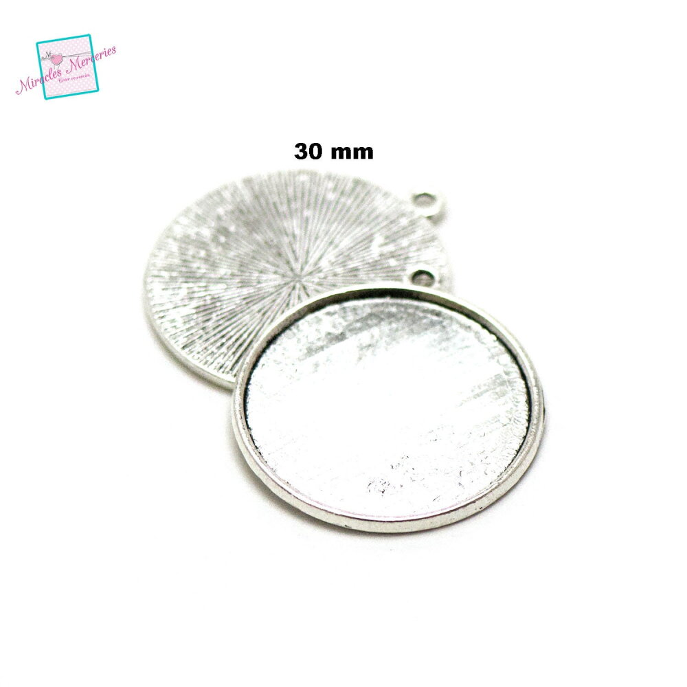 4 supports cabochon pendentif "ronde 30 mm", argenté / bronze