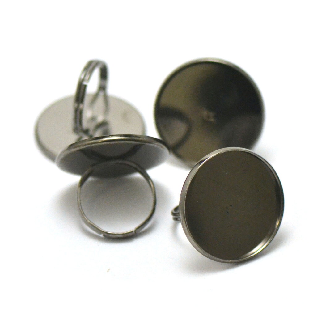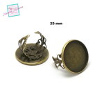 4 supports cabochons bague ronde 25 mm ronde, argenté/ bronze/ doré/gun-métal