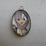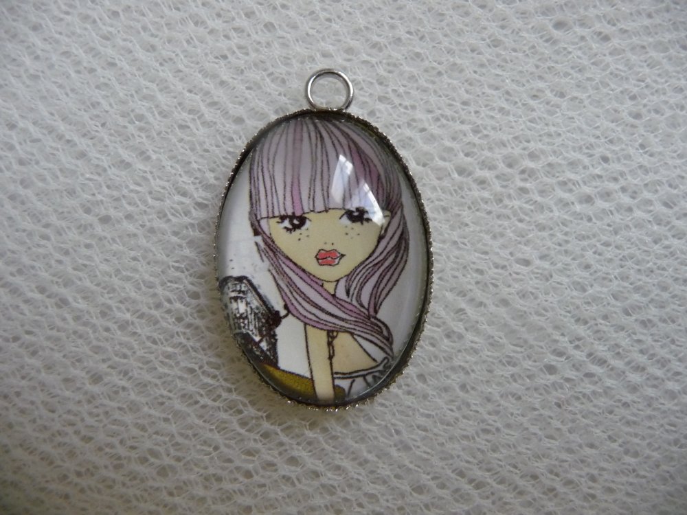 ADORABLE PENDENTIF MEDAILLON OVALE, ILLUSTRATION VISAGE FILLETTE, SUPPORT METAL ARGENTE